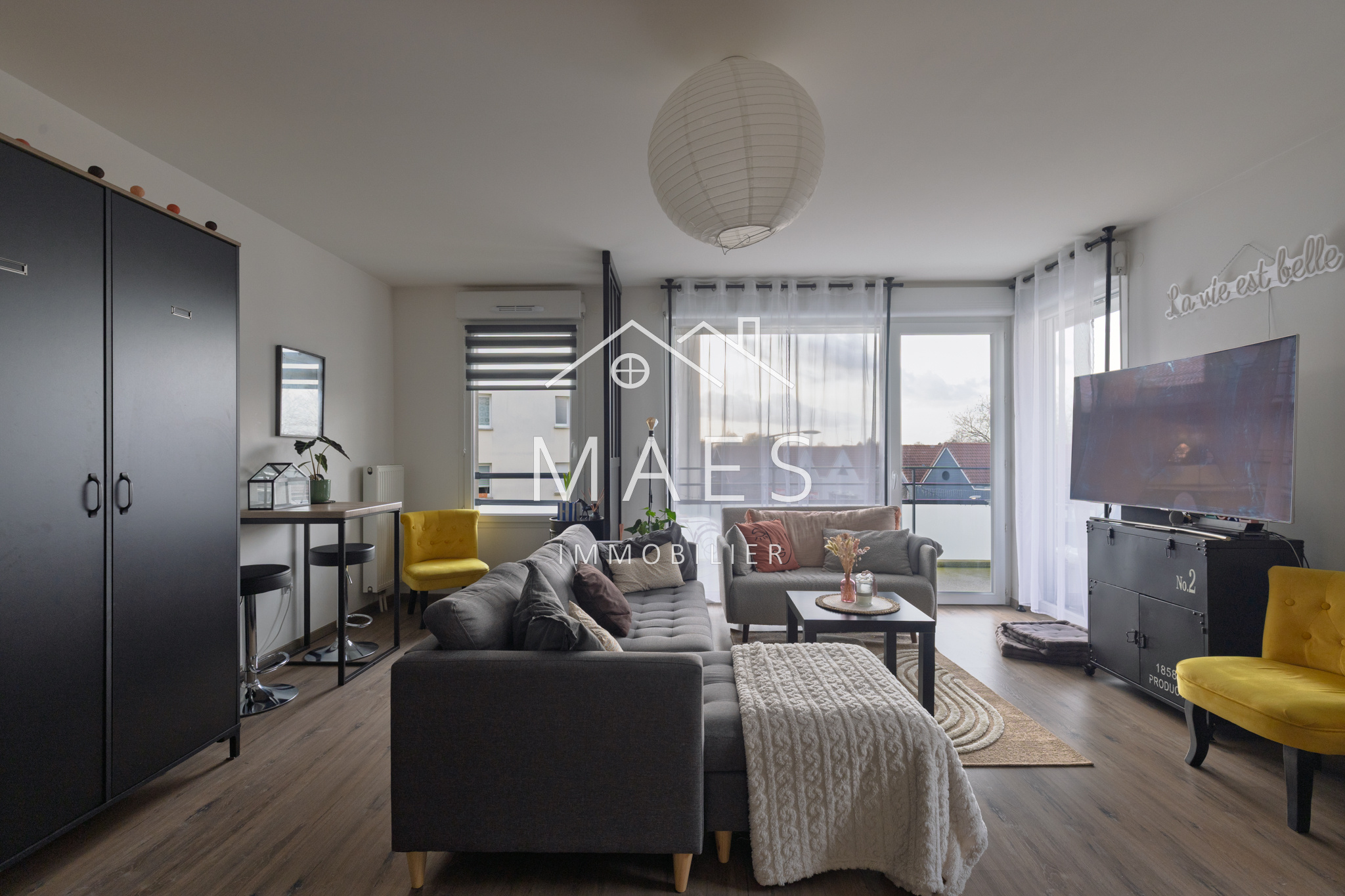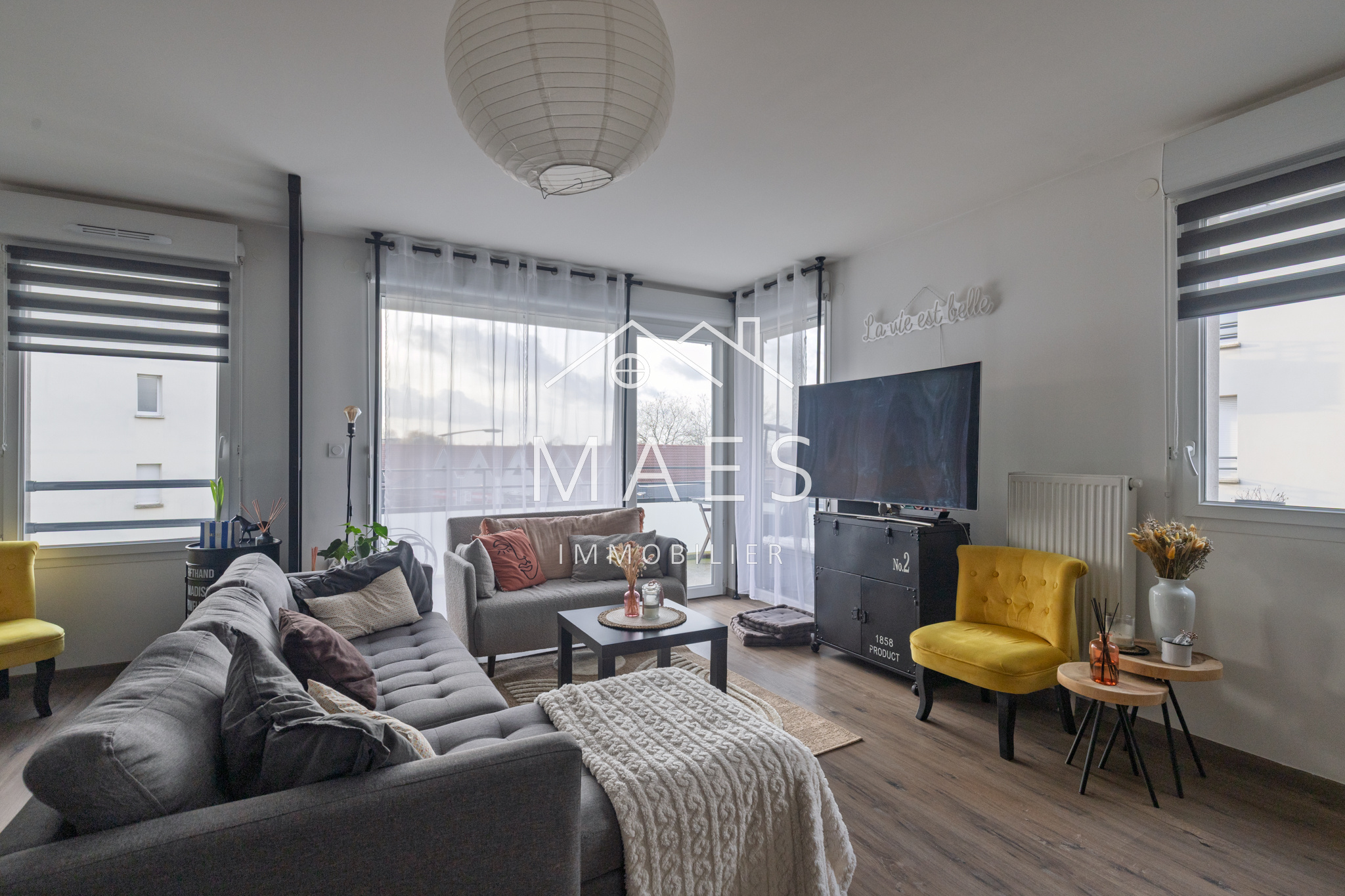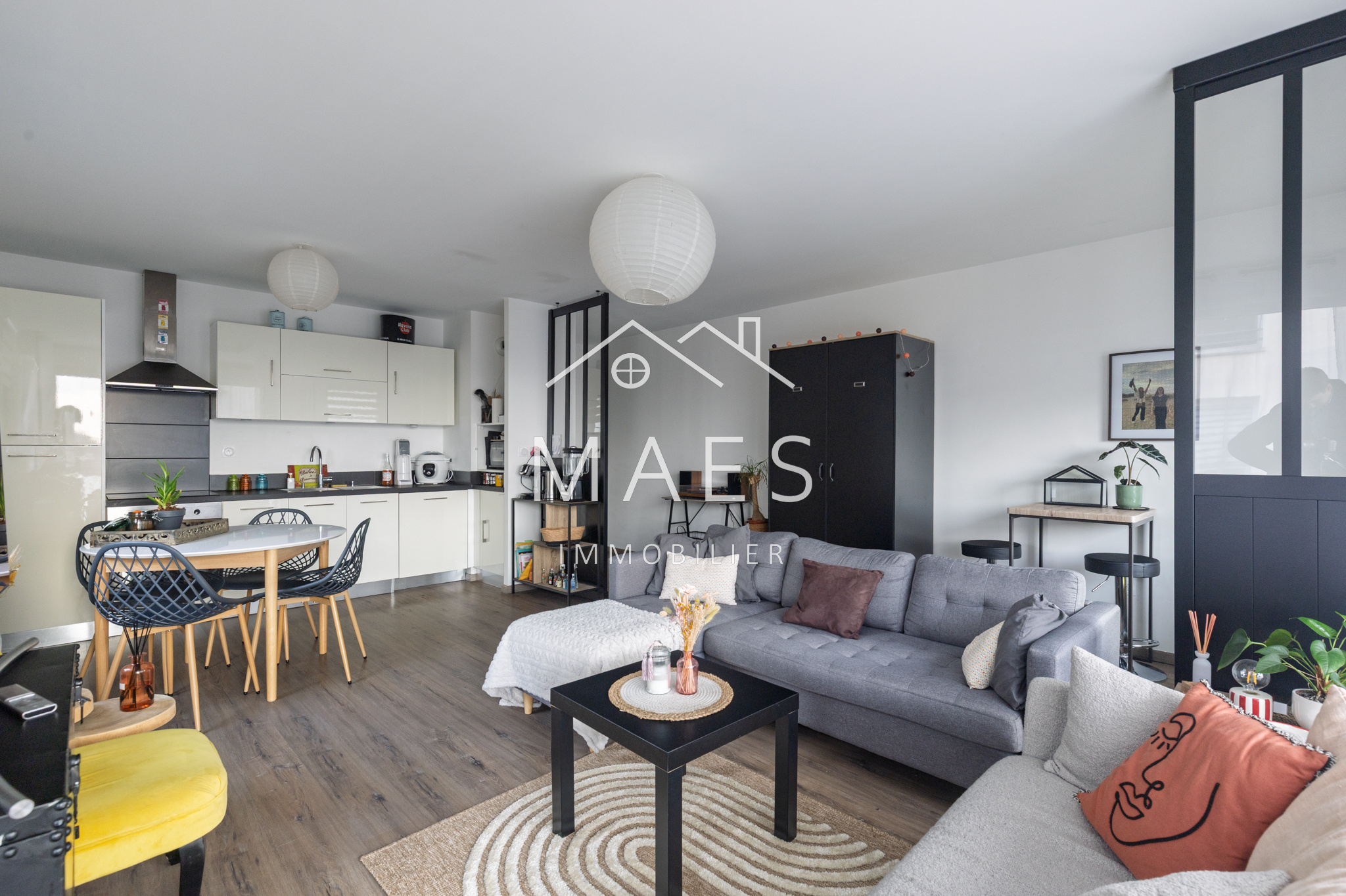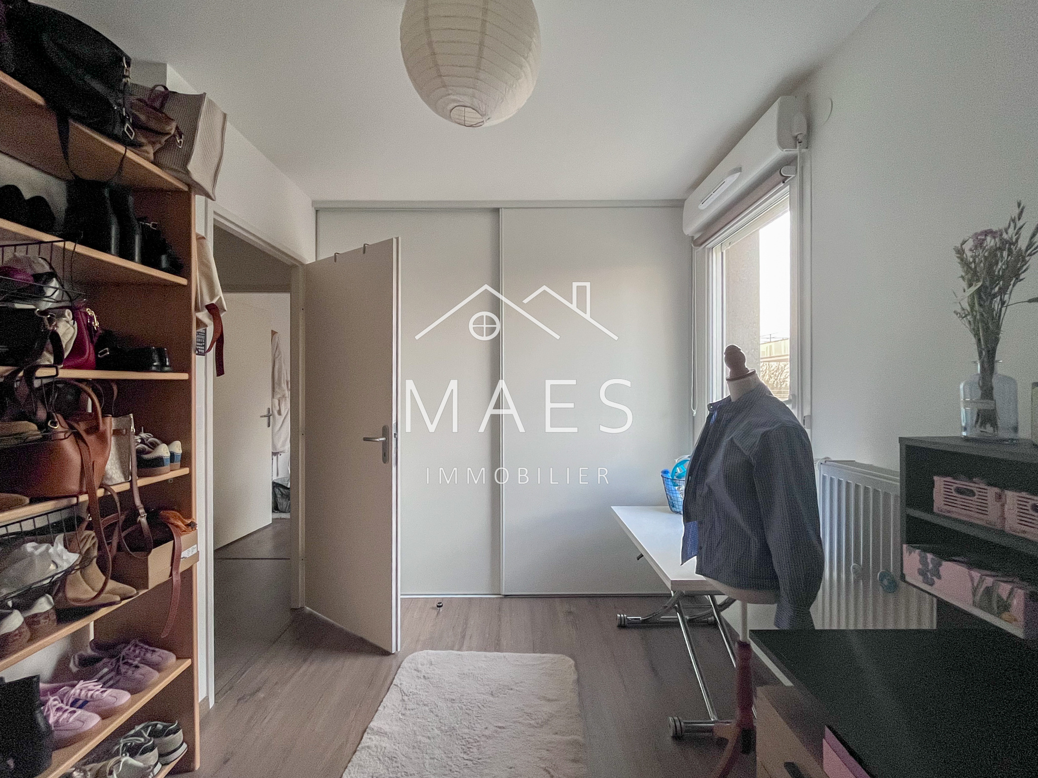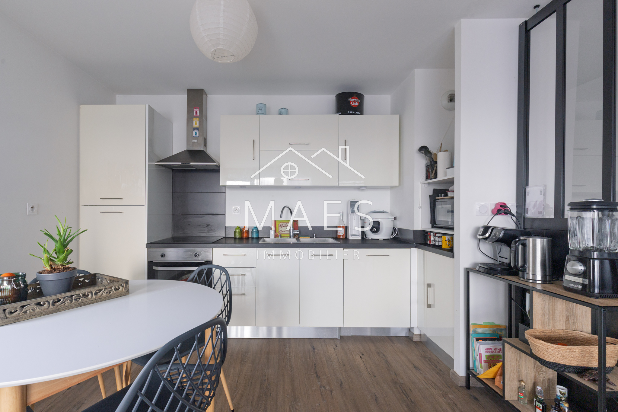 Nouveauté !Idéalement situé à WAMBRECHIES, dans une agréable résidence récente et sécurisée, au pied des commerces, transports et des bords de Deûle pour vos promenades : votre agence MAES IMMOBILIER a le plaisir de vous présenter ce superbe appartement T3 d'environ 71 m2 habitables, avec un spacieux balcon exposé sud-ouest et deux places de stationnement privés couvertes.Vous apprécierez ses volumes et prestations de qualité ; la vaste entrée avec vestiaire vous mène à une grande et lumineuse pièce de vie à la vue dégagée d'environ 32 m2, donnant sur la campagne au loin. La cuisine équipée est fonctionnelle, dotée de nombreux rangements.WC indépendant, salle de bain avec baignoire/douche et espace buanderie en très bon état.Une grande chambre de 11,5 m2, puis une seconde de 10 m2 avec placards intégrés.Situé dans une résidence de 2017, bien tenue et sécurisée, cet appartement soigné allie confort, fonctionnalité et cadre exceptionnel. Un véritable coup de cœur, à découvrir sans tarder !