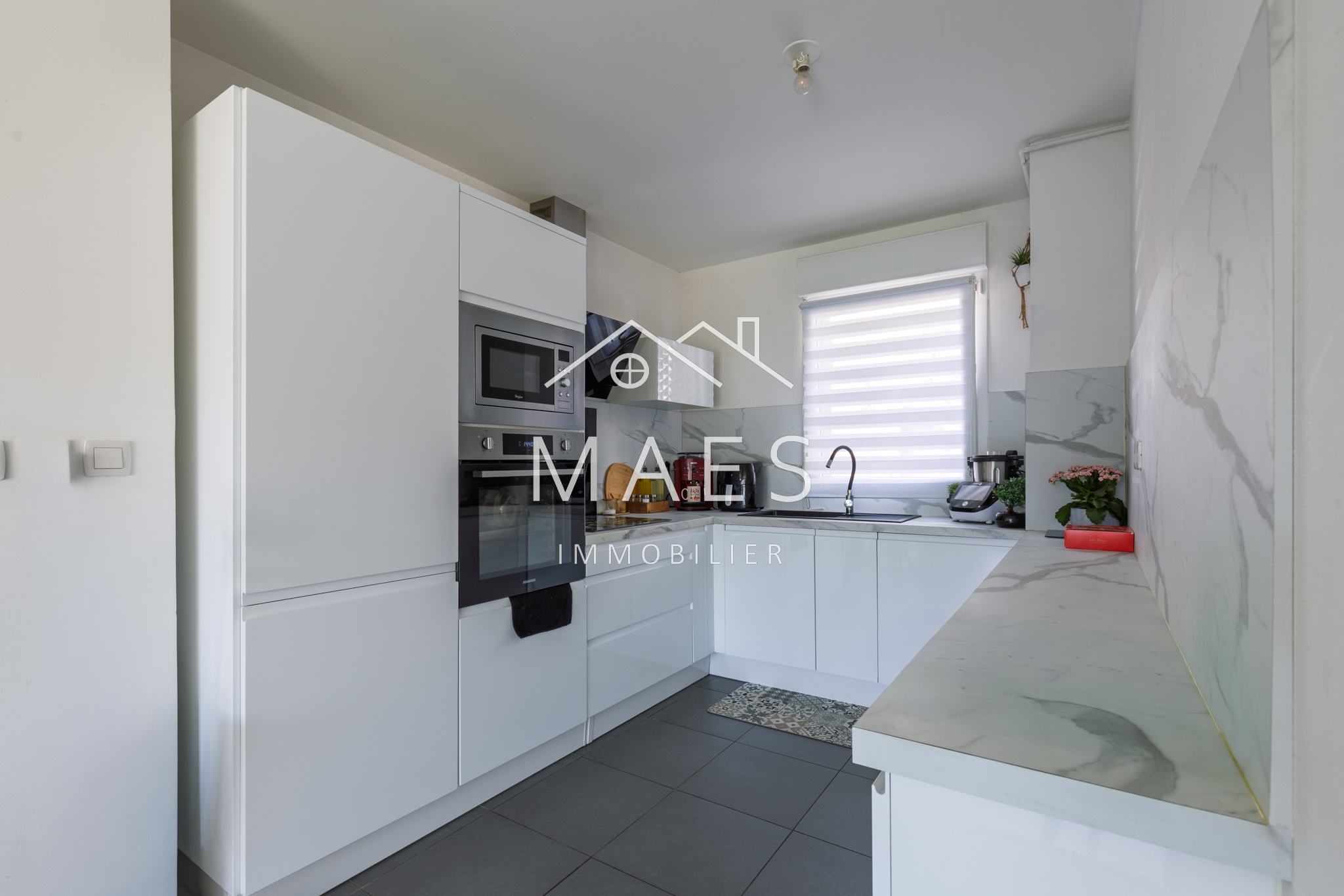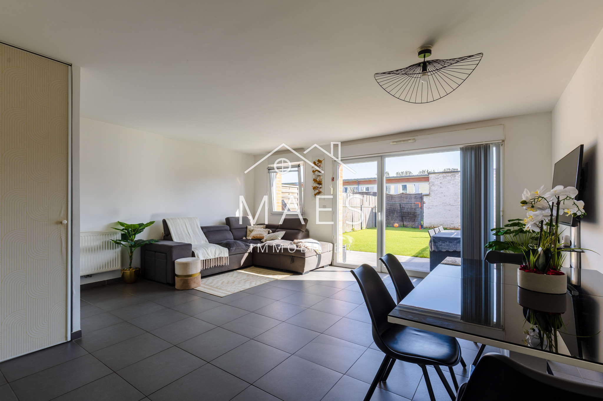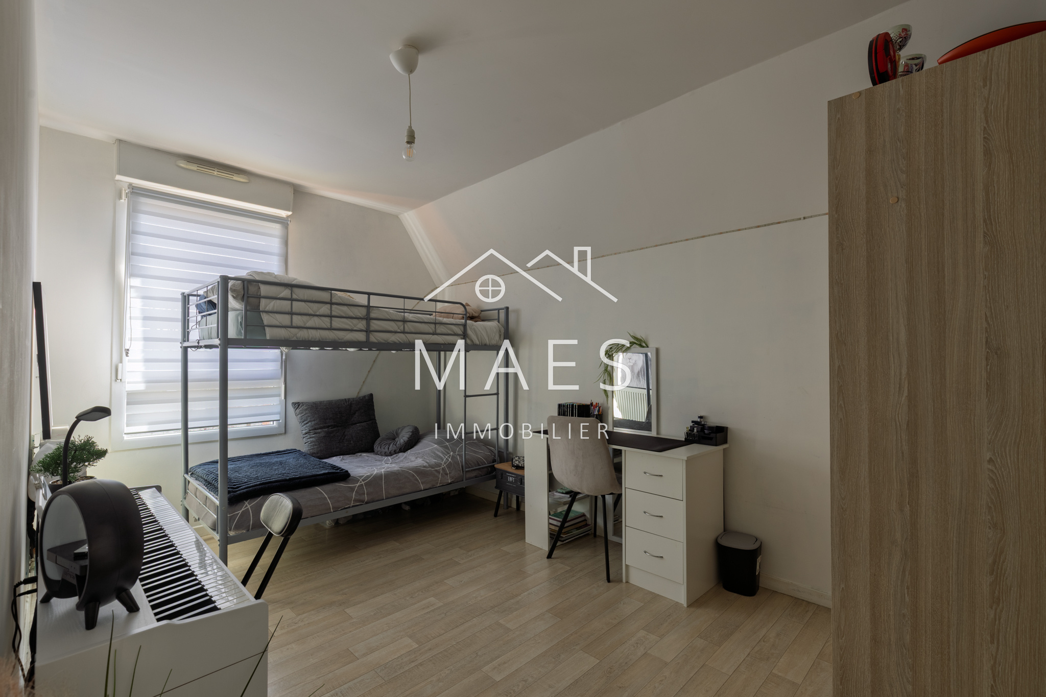 WAMBRECHIES, centre-ville. Votre agence MAES IMMOBILIER a le plaisir de vous présenter, à proximité immédiate des commerces, écoles et transports, ainsi que de la Deûle pour vos promenades, au sein d'un petit quartier sécurisé, venez découvrir cette jolie maison semi-individuelle de 2015 de 90 m2 habitables environ, jardin bien exposé et garage box fermé, stationnement devant la maison. Vous apprécierez ses volumes et prestations de qualité : l'entrée avec WC indépendant + cellier, vous mène à un agréable et lumineux salon - séjour donnant sur la terrasse avec store ban et le jardin. Coup de coeur pour la cuisine 'OSKAB' de 2024, équipée de nombreux rangements, électroménager complet et grand plan de travail. Vestiaire sous escalier. L'étage se compose de trois chambres confortables (comprises entre environ 10,5 m2 et 14,30 m2) dont l'une dispose d'un grand placard type dressing, puis la salle de bain (vasque, baignoire, emplacement buanderie). Possibilité d'aménagement supplémentaire dans les combles. Cette maison très bien entretenue est idéalement située, il n'y a plus qu'à s'y installer !