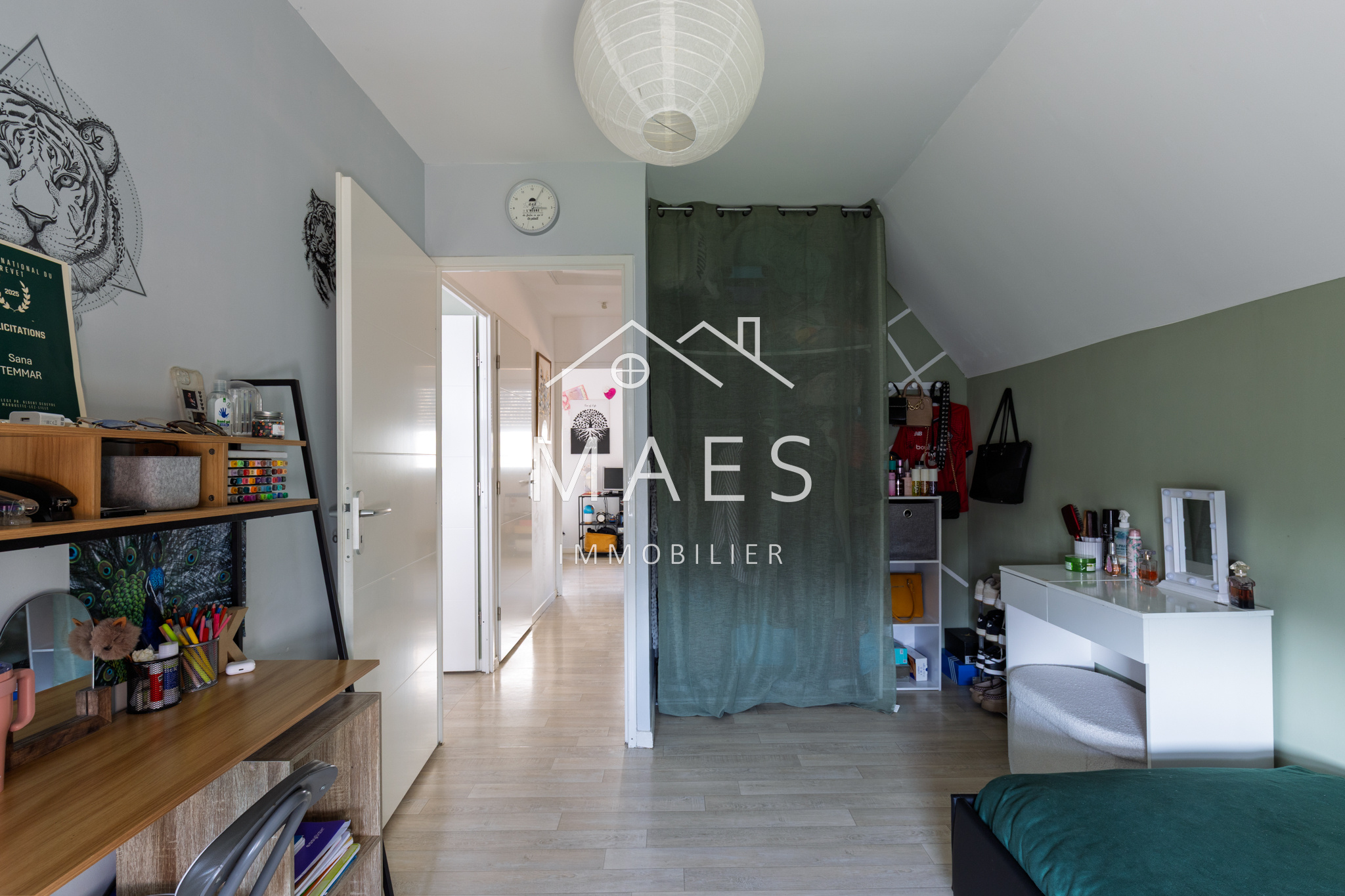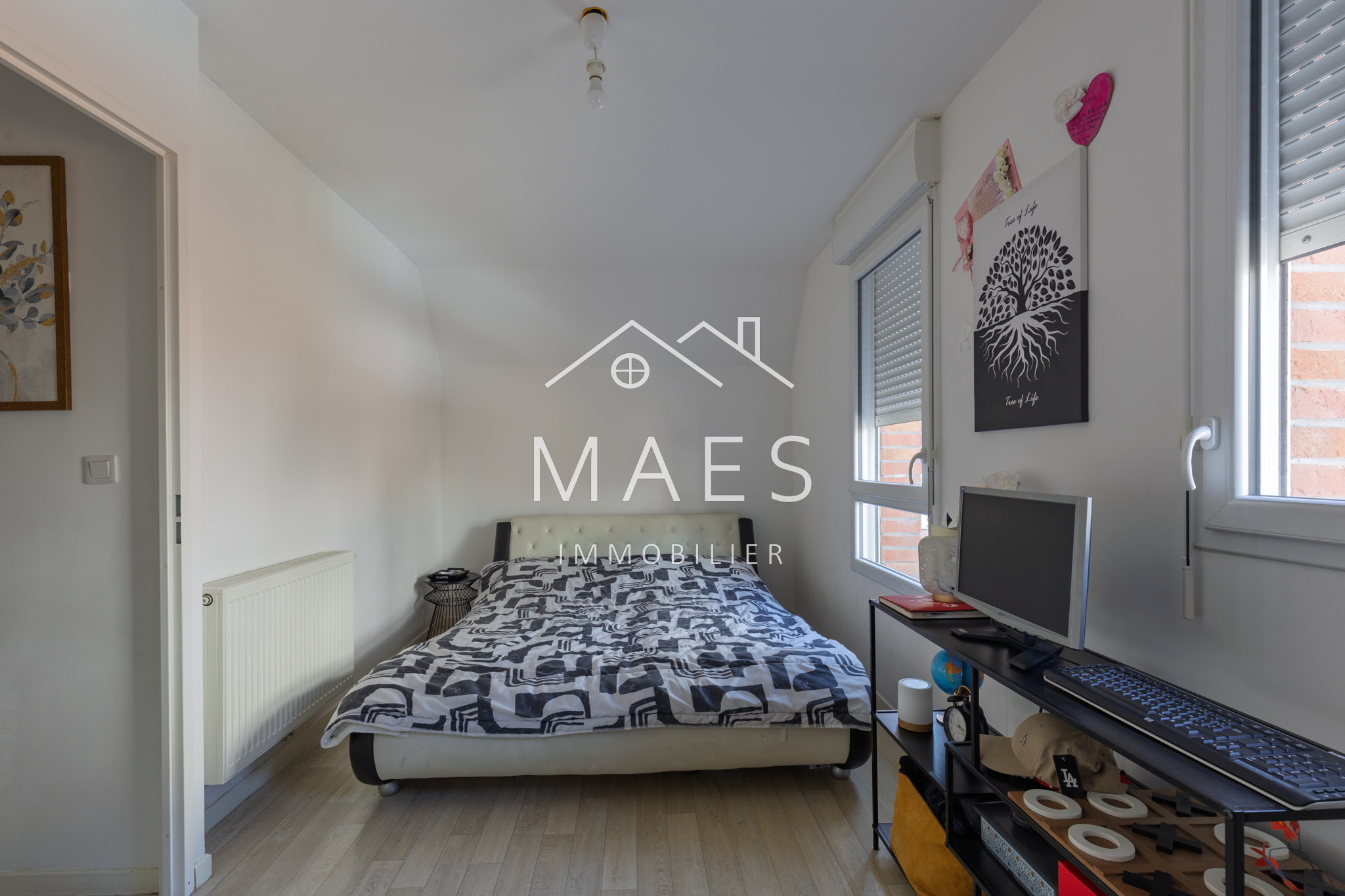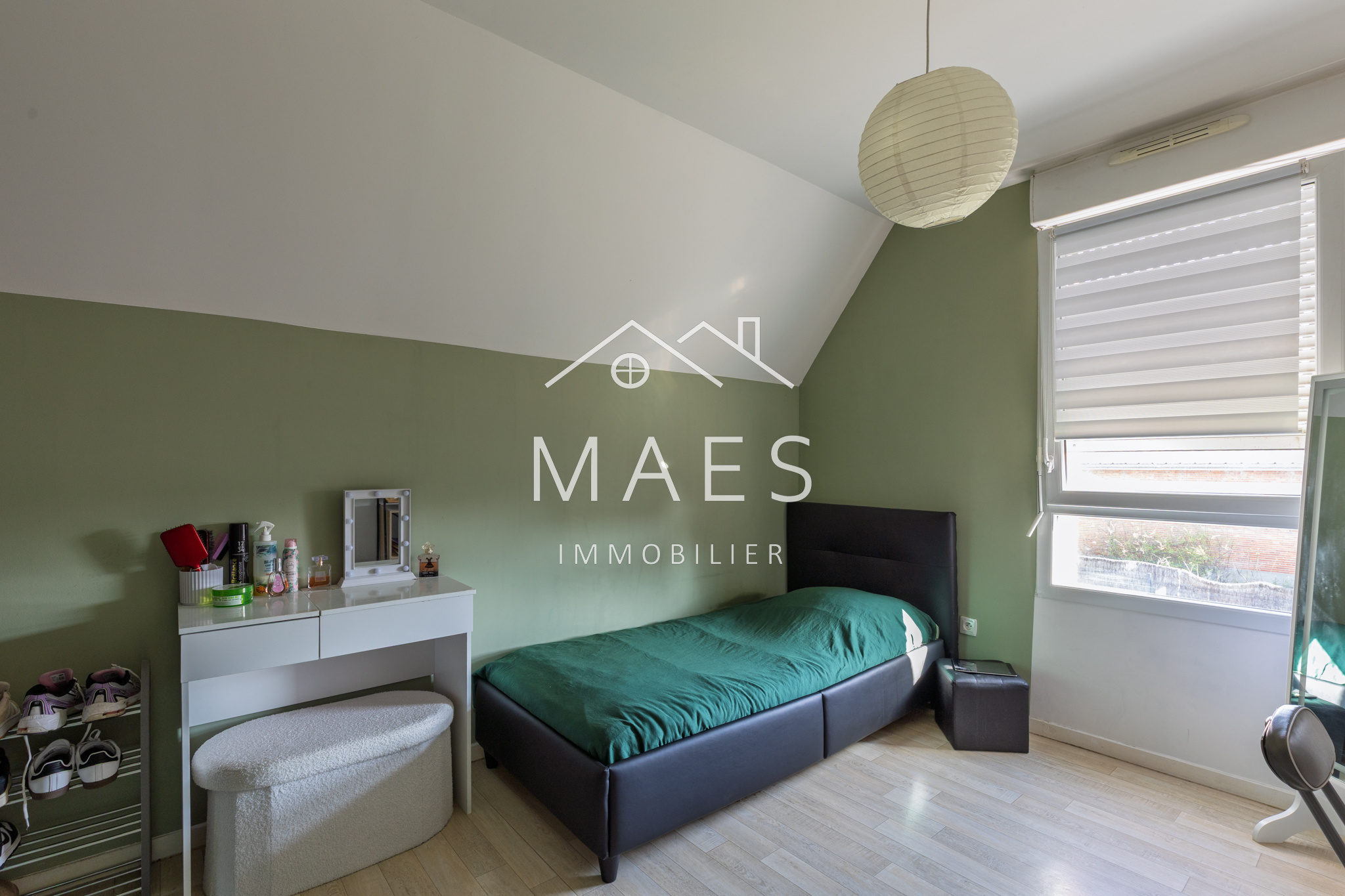 WAMBRECHIES, centre-ville. Votre agence MAES IMMOBILIER a le plaisir de vous présenter, à proximité immédiate des commerces, écoles et transports, ainsi que de la Deûle pour vos promenades, au sein d'un petit quartier sécurisé, venez découvrir cette jolie maison semi-individuelle de 2015 de 90 m2 habitables environ, jardin bien exposé et garage box fermé, stationnement devant la maison. Vous apprécierez ses volumes et prestations de qualité : l'entrée avec WC indépendant + cellier, vous mène à un agréable et lumineux salon - séjour donnant sur la terrasse avec store ban et le jardin. Coup de coeur pour la cuisine 'OSKAB' de 2024, équipée de nombreux rangements, électroménager complet et grand plan de travail. Vestiaire sous escalier. L'étage se compose de trois chambres confortables (comprises entre environ 10,5 m2 et 14,30 m2) dont l'une dispose d'un grand placard type dressing, puis la salle de bain (vasque, baignoire, emplacement buanderie). Possibilité d'aménagement supplémentaire dans les combles. Cette maison très bien entretenue est idéalement située, il n'y a plus qu'à s'y installer !