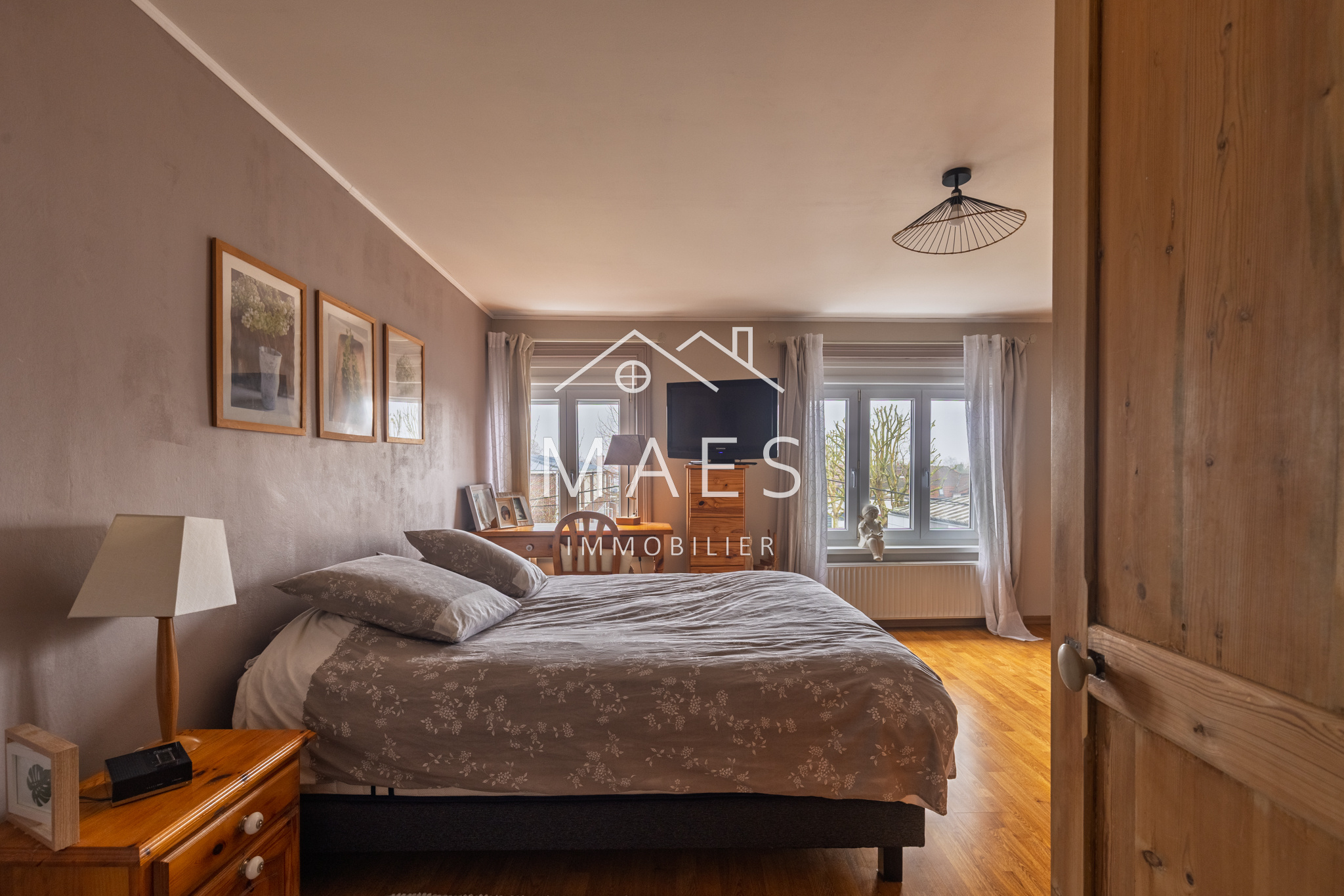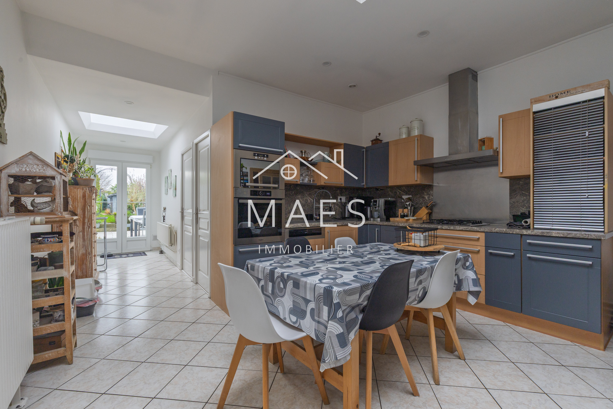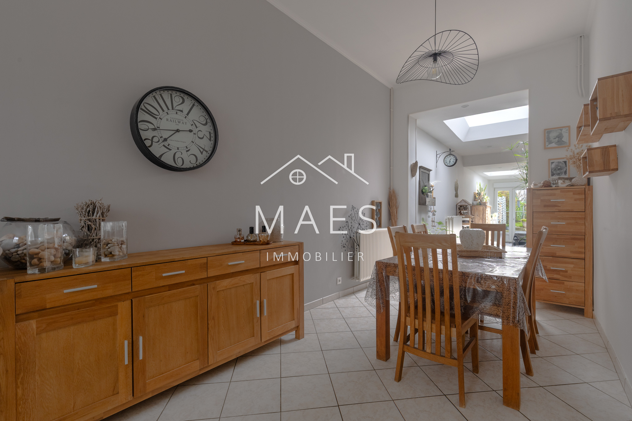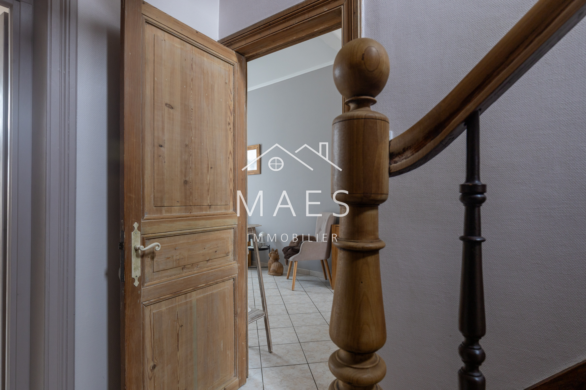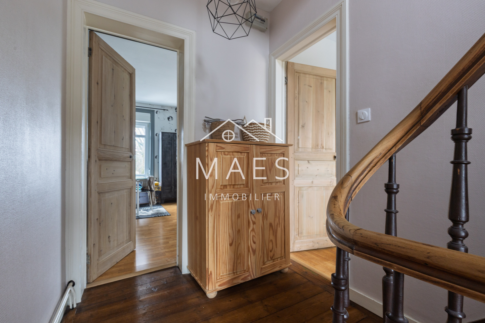 CENTRE-VILLE DE WAMBRECHIES -Idéalement située à proximité immédiate des commerces, écoles, transports en commun et principaux axes routiers, votre agence MAES IMMOBILIER vous invite à découvrir cette superbe maison de famille des années 1930, offrant environ 150 m2 habitables et un agréable jardin arboré.Vous serez immédiatement séduit par ses beaux volumes et son cachet de l’ancien parfaitement préservé.Au rez-de-chaussée, une entrée élégante avec escalier d’époque dessert un salon-séjour lumineux ainsi qu’une cuisine conviviale, dotée de nombreux rangements et d’un espace repas fonctionnel. Salle de bain récemment rénovée comprenant douche, double vasque et espace buanderie. WC séparé.Au premier étage, un palier avec parquet ancien mène à deux chambres confortables de 20 m2 et 10 m2. Coup de cœur pour le charme des menuiseries d'époque !L’escalier se prolonge vers le deuxième étage, où se trouve une troisième chambre spacieuse de 20 m2.Enfin, le dernier niveau accueille une quatrième chambre de 18 m2, idéale pour offrir à chacun son espace de vie.Côté extérieur, vous profiterez d’une belle terrasse, à l’abri des regards, ainsi que d’un jardin clos, calme et verdoyant. Abri de jardin et bassin.Atout supplémentaire de la maison : une cave de 10 m2.Cette charmante bâtisse des années 30, chaleureuse et soigneusement entretenue, n’attend plus que sa nouvelle famille. Une visite s’impose !