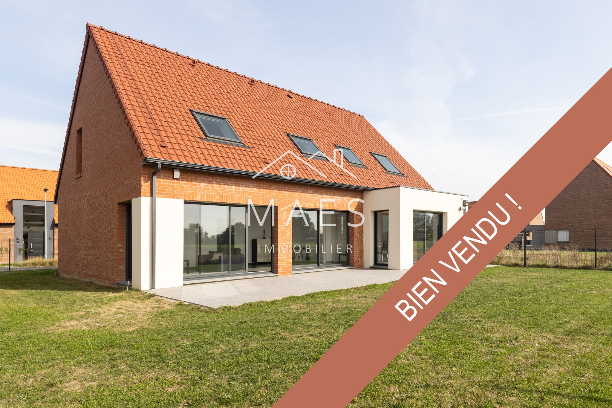 ** VENDU ** COMINES - SAINTE-MARGUERITE Votre agence MAES IMMOBILIER WAMBRECHIES, a le plaisir de vous présenter cette superbe construction individuelle de 151m2 habitables - 5 chambres - 3 salles de bains - construite en 2023 en bordure de campagne dans le secteur prisé de COMINES SAINTE MARGUERITE. Située en impasse dans un quartier résidentiel, sur une parcelle de 450m2 face aux champs, cette maison sera idéale pour qui est en quête de nature et de calme. Au rez-de-chaussée, le ton est donné dès l'entrée, matériaux, finitions, grandes ouvertures, la maison propose des prestations de qualités. Le séjour de 37m2, orienté sud ouest, est baigné de lumière grâce aux deux larges baies vitrées. La vue est dégagée sur la campagne, sans vis-à-vis. La cuisine semi ouverte moderne et fonctionnelle, avec ses nombreux rangements et espace déjeunatoire invite à passer de bons moments en famille ou entre amis. On retrouve, à l'écart des pièces de vie, une première chambre de plain pied avec sa salle d'eau attenante (attentes et placos réalisés, prête à aménager). Un véritable atout. Cellier et WC séparés. A l'étage, le pallier dessert un espace parental de plus de 26m2 au sol incluant un dressing et une salle d'eau à aménager. S'ajoutent trois chambres supplémentaires de 16, 15 et 13m2 au sol. Chacune dispose d'un espace dressing qui pourra être aménagé. Enfin, on retrouve une troisième salle de bains, idéale pour des moments de détente avec baignoire, douche et une double vasque. WC indépendants. Large jardin au calme et terrasse ensoleillés. Un double garage de plus de 31m2 et deux emplacements privés de stationnement devant la maison. Possibilité de créer un atelier dans le garage grâce à la fenêtre présente et aux arrivées d'eau et électricité prévues. Cette maison, rare sur le secteur, est un véritable coup de coeur ! Contactez-nous pour vite la découvrir.