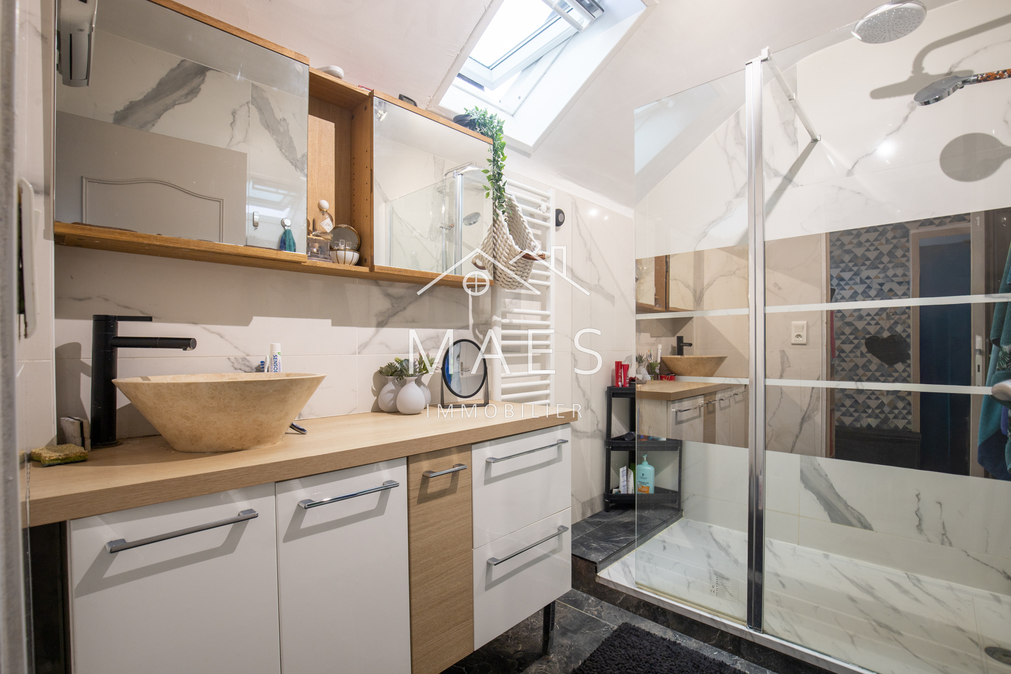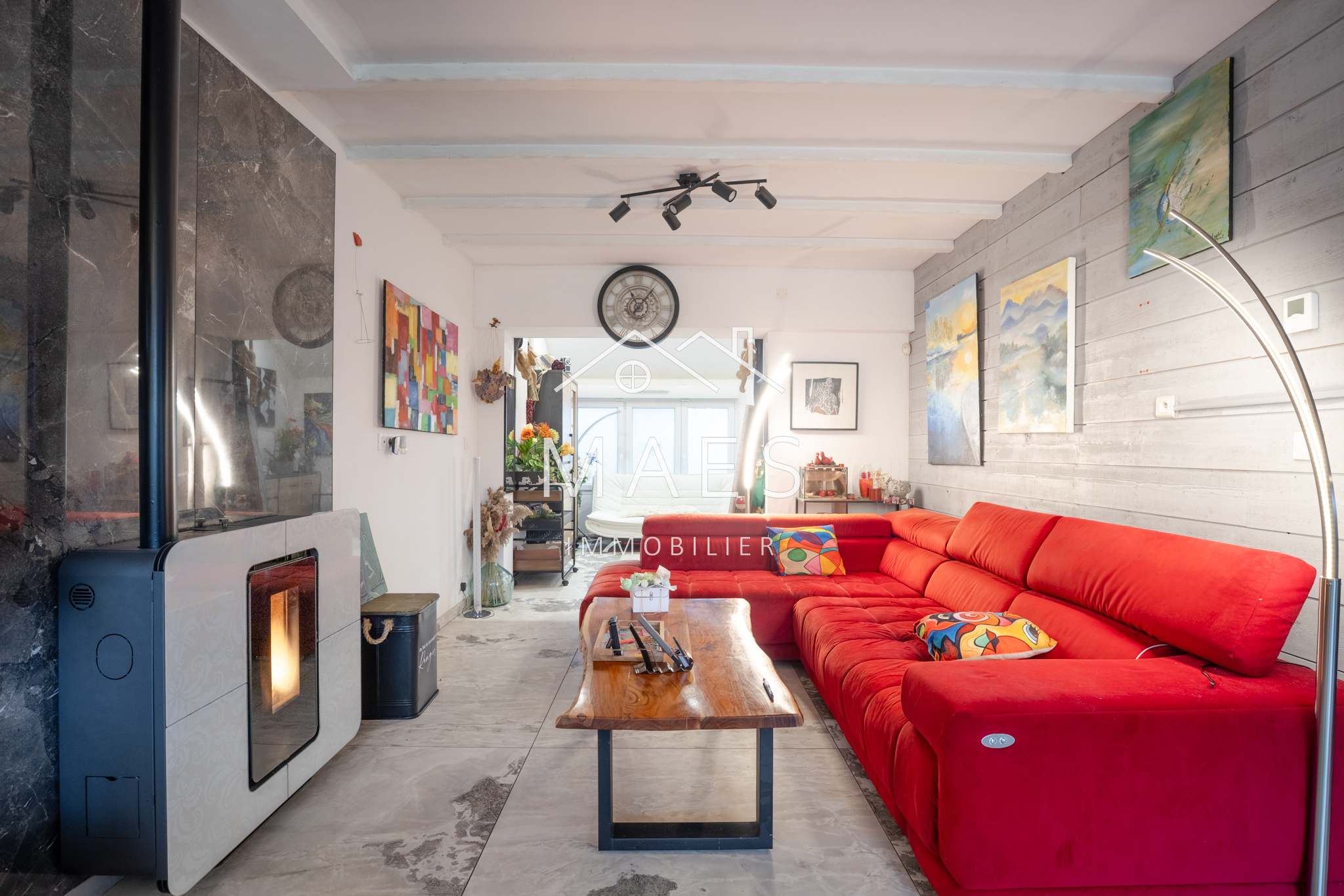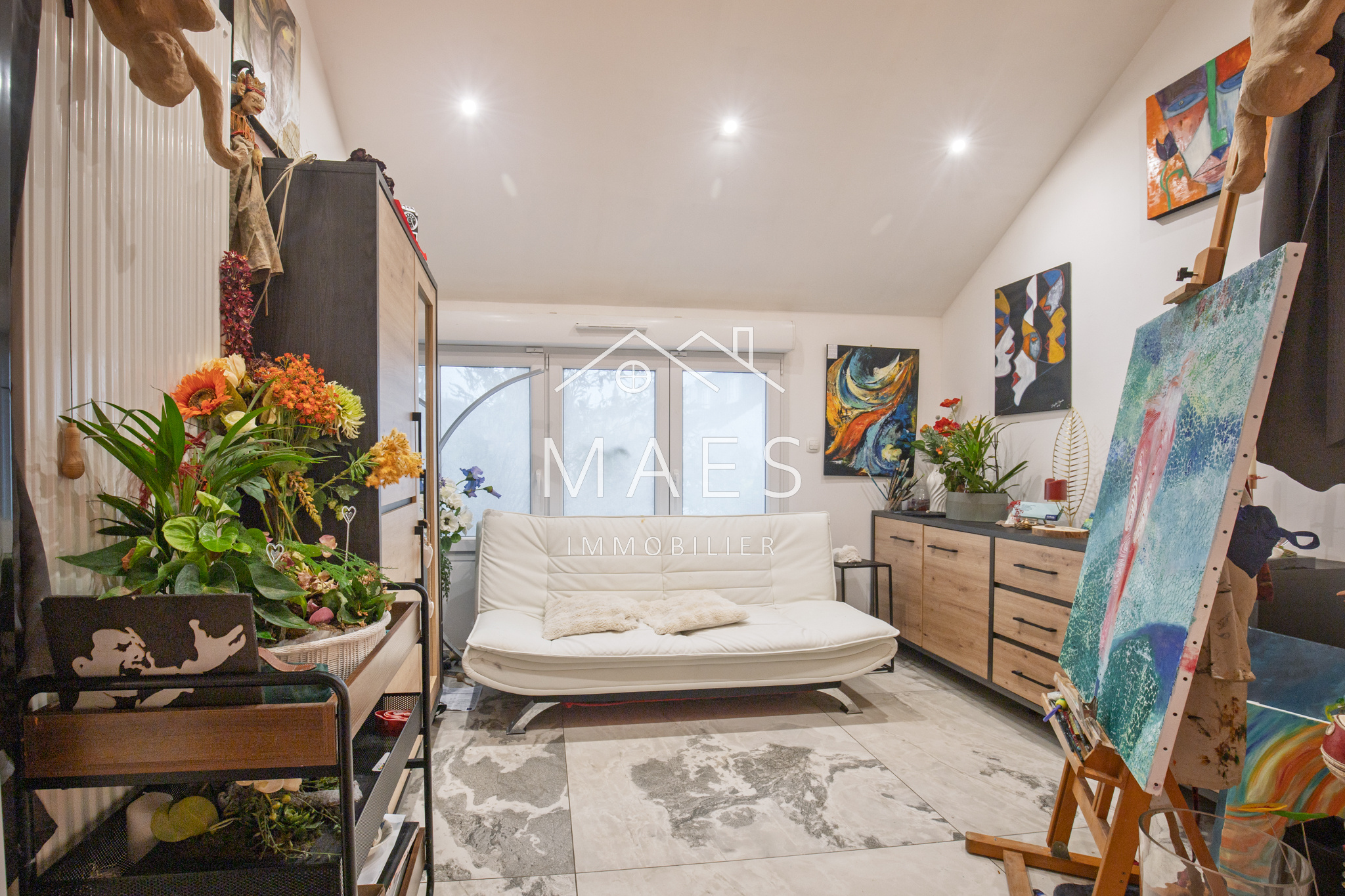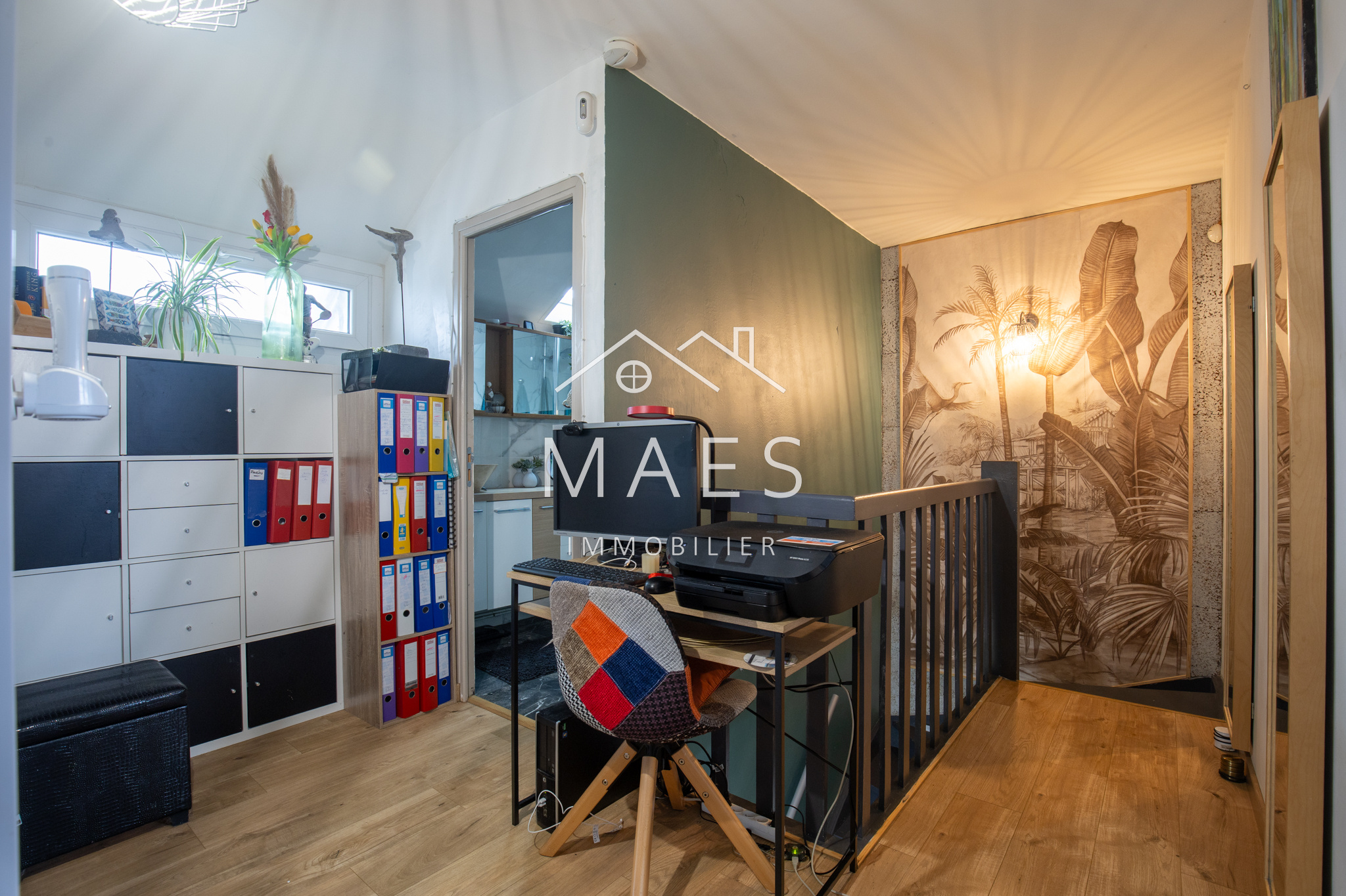 ** SOUS COMPROMIS ** EXCLUSIVITE - Nouveauté ! Idéalement située en centre-ville de WAMBRECHIES, à proximité des commerces, transports et écoles, ainsi que de la Deûle et des chemins de campagne : votre agence MAES IMMOBILIER a le plaisir de vous présenter cette charmante maison d'environ 100 m2 habitables, dotée d'un beau jardin arboré exposé sud-ouest ainsi que d'un garage et d'un stationnement privé. Dès l'entrée, vous apprécierez ses prestations de qualité : un vestiaire avec WC et accès au garage, vous mène à une grande pièce de vie lumineuse d'environ 48 m2, le tout donnant sur la terrasse et le jardin ensoleillés. Coup de coeur pour le superbe carrelage SCHELFHOUT. Le poêle à pellet CARSANA crée une atmosphère chaleureuse et conviviale, en plus de bien chauffer la maison. Un des atouts : un espace bureau ouvert complète le salon / séjour, permettant de nombreuses possibilités d'aménagement telle qu'une salle de jeux. La jolie cuisine équipée est fonctionnelle, et aussi très lumineuse grâce à ses baies-vitrées. La cave d'environ 20 m2 est parfaite pour du stockage. Un espace de rangement complémentaire a été aménagé au-dessus du garage. A l'étage, le large palier dessert 3 chambres d'une belle surface, dotées de placards. Une salle de bain récente composée d'une vasque et d'une douche à l'italienne. Vous profiterez d'agréables moments dans le jardin bien entretenu, au calme. Venez vite découvrir cette maison où il fait bon vivre !