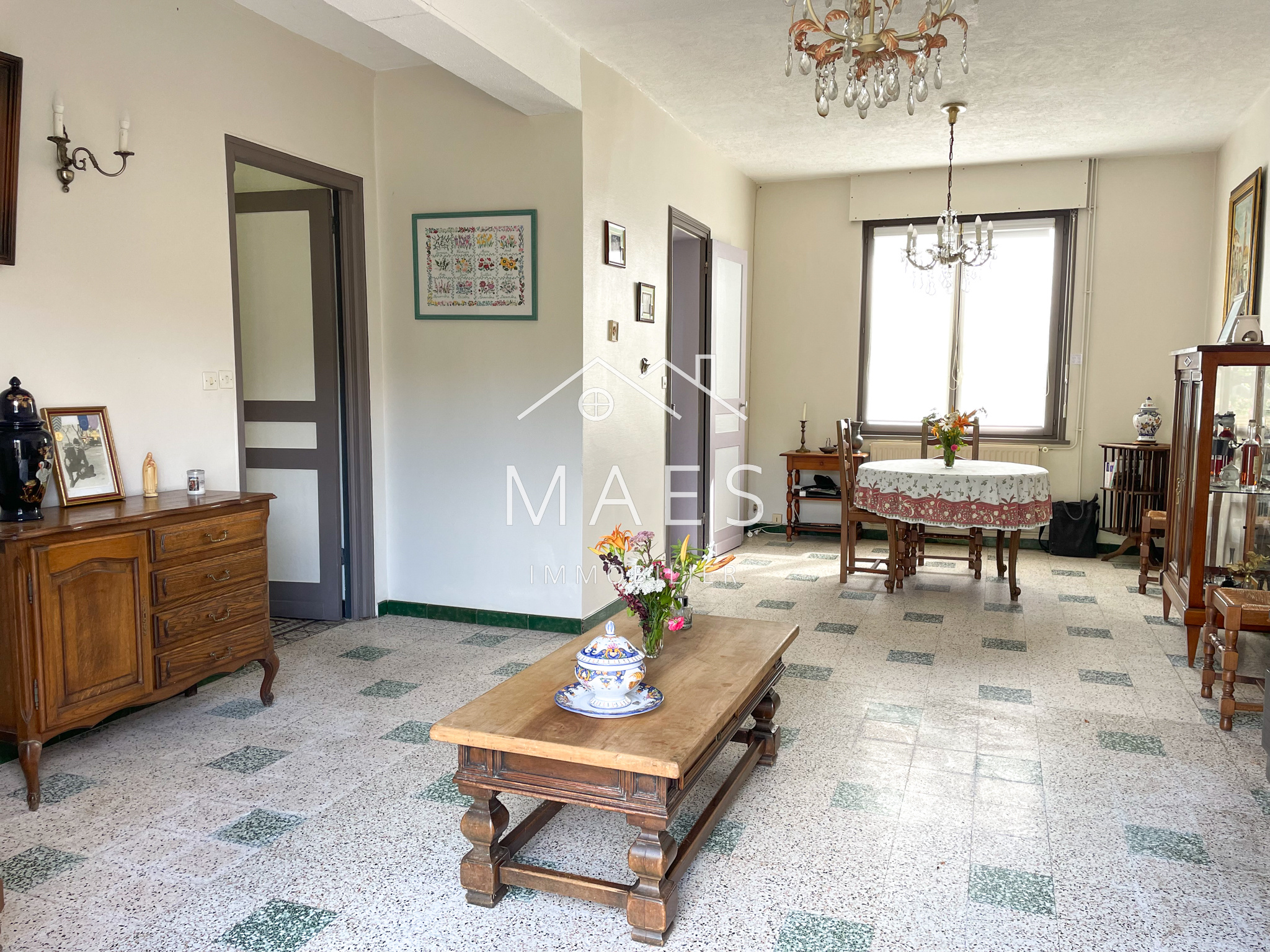 WAMBRECHIES Située dans un environnement verdoyant, en campagne de Wambrechies et à proximité directe de la Deûle pour vos promenades, cette maison individuelle offre un cadre de vie agréable et un beau potentiel d’aménagement, idéal pour un projet de rénovation ou de personnalisation.Au rez-de-chaussée, vous découvrirez une pièce de vie lumineuse de 28 m2, bénéficiant d’une belle ouverture sur l’extérieur. Les volumes sont agréables et la configuration permet d’imaginer facilement un espace convivial tourné vers le jardin. La cuisine attenante, offre un espace fonctionnel et lumineux. Son implantation permet une organisation pratique au quotidien et un lien naturel avec l’espace repas, idéal pour les moments de convivialité. On retrouve également au rez-de-chaussée, une salle de bain, des WC et une première chambre de 12 m2.Coup de coeur pour les superbes carreaux de ciments présents dans l'entrée, cuisine et chambre, qui apportent une véritable authenticité à la maison.L'étage offre un espace nuit confortable avec trois chambres lumineuses dont les surfaces sont d'environ 8, 12,5 et 17 m2. Sur le palier, un espace mezzanine de 7 m2 pourra permettre l'installation d'un espace de jeux ou d'un bureau.À l’extérieur, la maison profite d’une terrasse et d'un jardin, dans un environnement arboré, qui vous permettront de profiter de moments conviviaux en famille ou entre amis. Derniers atouts de ce bien, un garage de 19 m2 avec porte motorisée, une place de parking privative devant la maison et une cave.Des travaux de rénovation et de remise au goût du jour sont à prévoir, mais ce bien constitue une base saine, avec un fort potentiel d’évolution. Deux terrains constuctibles sont proposés en complément : - un premier terrain attenant à la maison d’environ 545 m2, - un second terrain situé à l’arrière, d’une surface d’environ 706 m2.Un bien rare, à découvrir rapidement pour un projet de vie ou d’investissement. Contactez-nous pour organiser une visite.