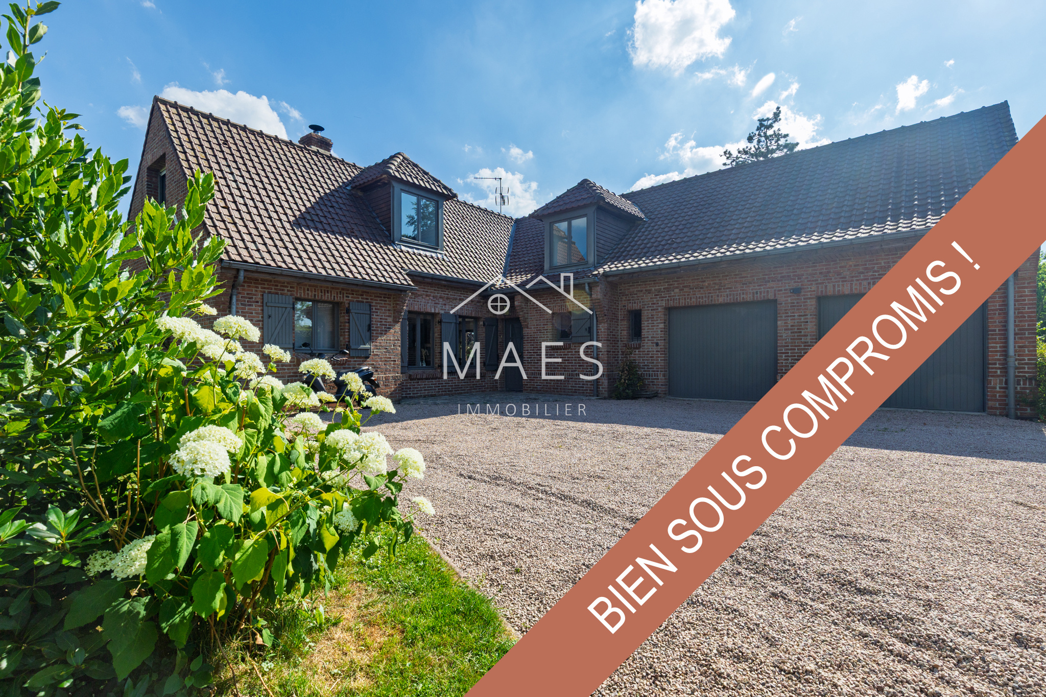 ** SOUS COMPROMIS ** BONDUES, à proximité directe de la CROIX BLANCHE - Votre agence MAES IMMOBILIER a le plaisir de vous présenter cette maison individuelle d'architecte en bordure des champs de 205 m2 au sol, 158 m2 habitables, construite sur une magnifique parcelle de près de 1300m2. Au rez-de-chaussée, la belle entrée cathédrale vous mène à une lumineuse pièce de vie ouverte d'environ 40 m2 (cheminée avec insert), donnant sur l'agréable terrasse ensoleillée. Un espace cuisine, équipé, fonctionnel grâce à ses nombreux rangements et à son espace repas, donnant sue une seconde terrasse. On retrouve également au rez-de-chaussée une pièce supplémentaite de 15m2, ouverte sur le jardin, pouvant être aménagée en bureau ou en chambre supplémentaire. Accès à la buanderie et au garage. A l'étage, le palier dessert un grand espace parental avec dressing et salle de bain (douche, baignoire et double vasque) ainsi que trois chambres confortables. Une salle d'eau composée d'une douche, d'une vasque et de rangement. Parking privatif devant la maison. Spacieux double garage et cave en sous-sol. Cette belle maison de famille n'attend plus que vous : venez vite la découvrir !
