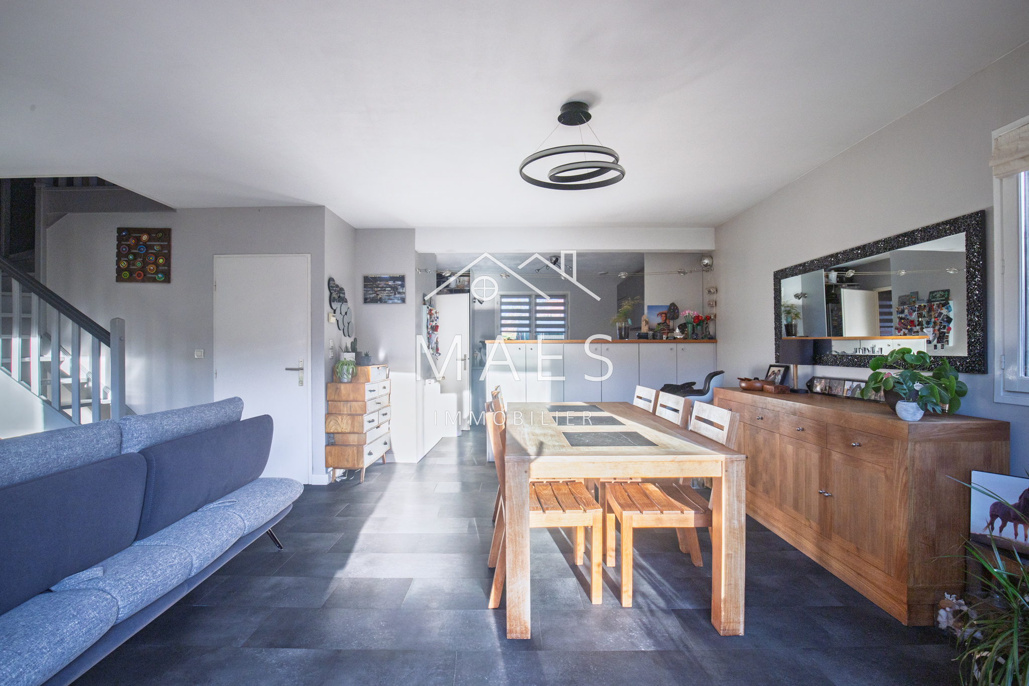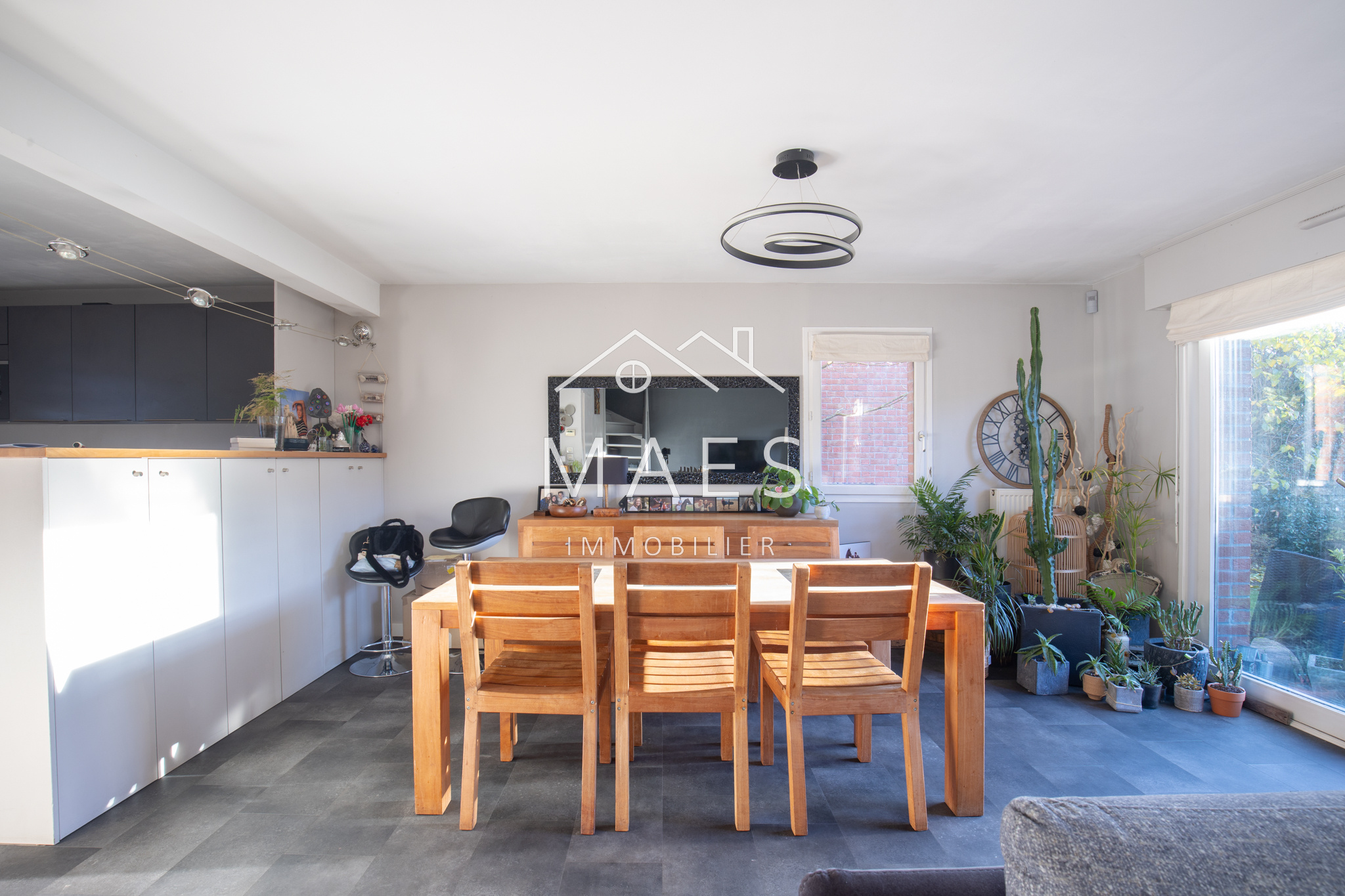 ** SOUS OFFRE ** Nouveauté / Exclusivité MAES IMMOBILIER à WAMBRECHIES - Au cœur du Domaine des Châteaux à WAMBRECHIES, prisé pour son cadre de vie unique où l'on fait tout à pied, à proximité immédiate des écoles, commerces, transports et de la Deûle pour vos promenades : votre agence MAES IMMOBILIER a le plaisir de vous présenter cette superbe maison individuelle de 2002 d'environ 100 m2 habitables / 130 m2 au sol, beau jardin ensoleillé exposé sud-ouest, garage et stationnements privatifs. Vous apprécierez ses volumes et prestations : l'entrée avec vestiaire + WC, vous mène à une spacieuse et lumineuse pièce de vie, donnant sur la terrasse et le jardin bien orientés, où vous profiterez de moments conviviaux. Une agréable cuisine SCHMIDT ouverte de 2022, aux nombreux rangements. Belles finitions, électroménager de qualité. A l'étage, le palier dessert trois chambres confortables, dotées de placards intégrés. Une grande salle de bain composée d'une baignoire, d'une douche et d'un second WC. Un des atouts de la maison : les combles ont été aménagés en une quatrième chambre d'environ 16 m2 au sol, avec placards intégrés. Deux stationnements privatifs devant la maison, garage d'environ 15 m2 avec buanderie. Dans un environnement exceptionnel, cette maison familiale soignée et bien entretenue est un vrai coup de cœur, venez vite la découvrir !