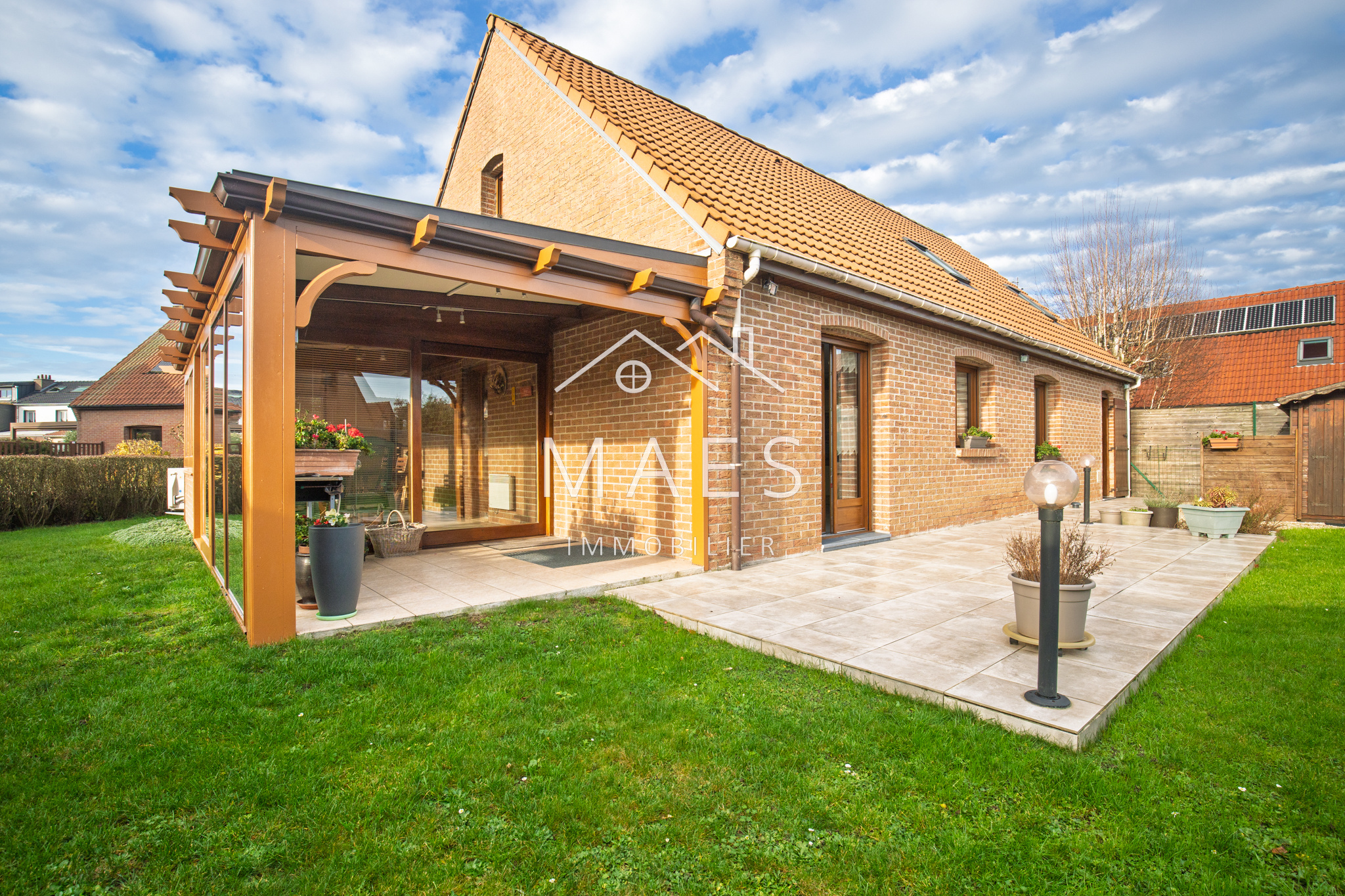 Nouveauté ! Centre-ville de WAMBRECHIES. Au calme, à proximité des commerces, écoles, transports et des axes routiers, des bords de Deûle ; votre agence MAES IMMOBILIER a le plaisir de vous présenter cette superbe maison individuelle construite en semi plain-pied d'environ 135 m2 habitables, bâtie sur une belle parcelle ensoleillée et arborée d'environ 520 m2 ! Garage, stationnement privé devant la maison. Cette maison chaleureuse offre volumes et prestations de qualité : l'entrée avec WC vous mène à une agréable pièce à vivre d'environ 40 m2, incluant une grande cuisine équipée, fonctionnelle grâce à ses nombreux rangements. Vous apprécierez la véranda d'environ 16 m2 donnant sur le jardin, où vous profiterez de moments conviviaux. Pergola en sus. Beaux atouts de la maison : une chambre en rez-de-chaussée d'environ 12,5 m2, une salle de bain et une seconde chambre de plus de 9 m2 actuellement utilisée comme bureau, permettent des possiblités d'aménagements. Le garage complète le rez-de-chaussée, avec un espace buanderie. A l'étage : le palier dessert 3 chambres confortables, une seconde salle de bain avec WC, puis un dressing et un placard de rangement. Cabanon de jardin, climatisation réversible dans la pièce de vie. Cette charmante maison est soignée et bien entretenue ; venez vite la découvrir !