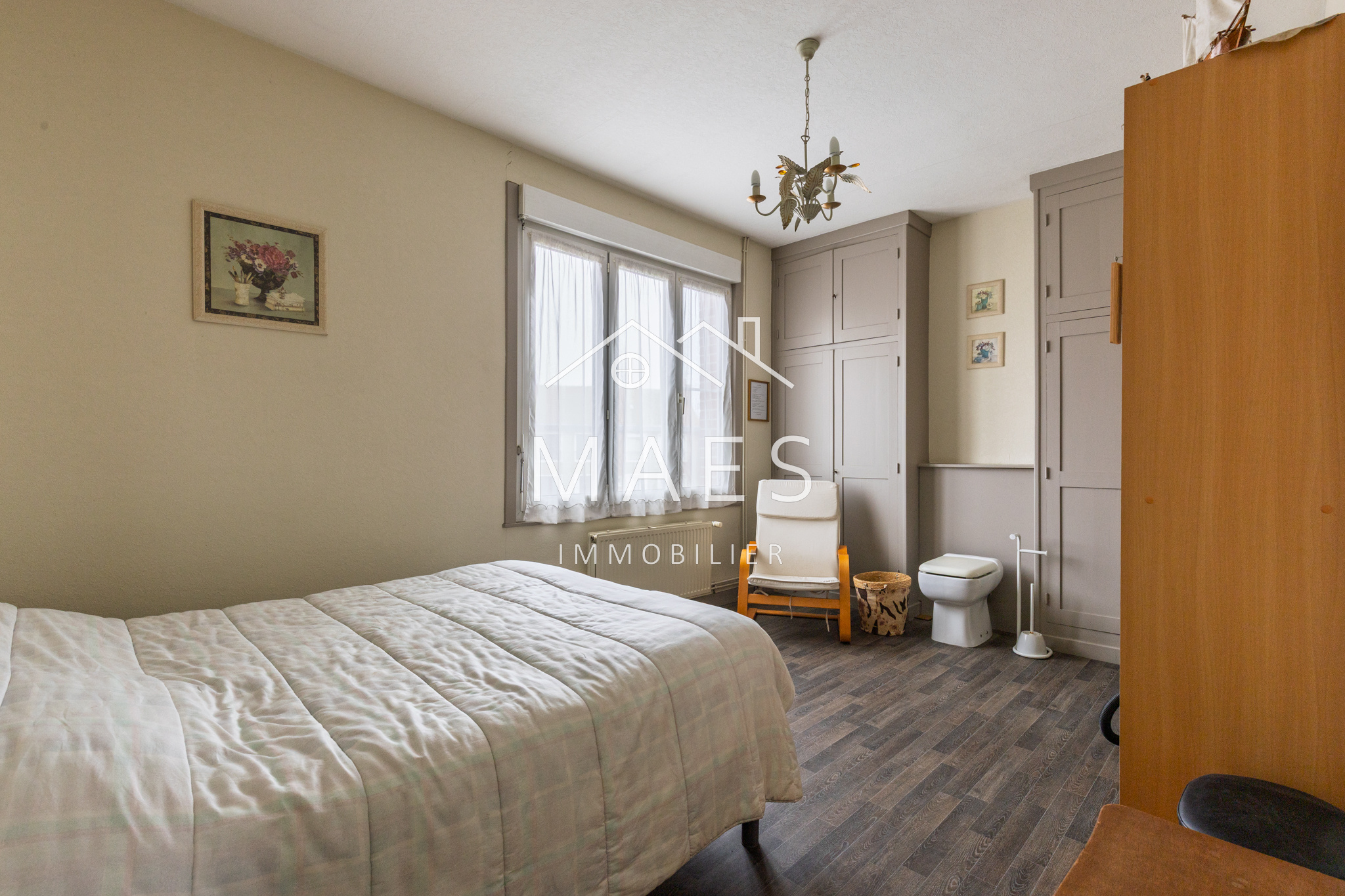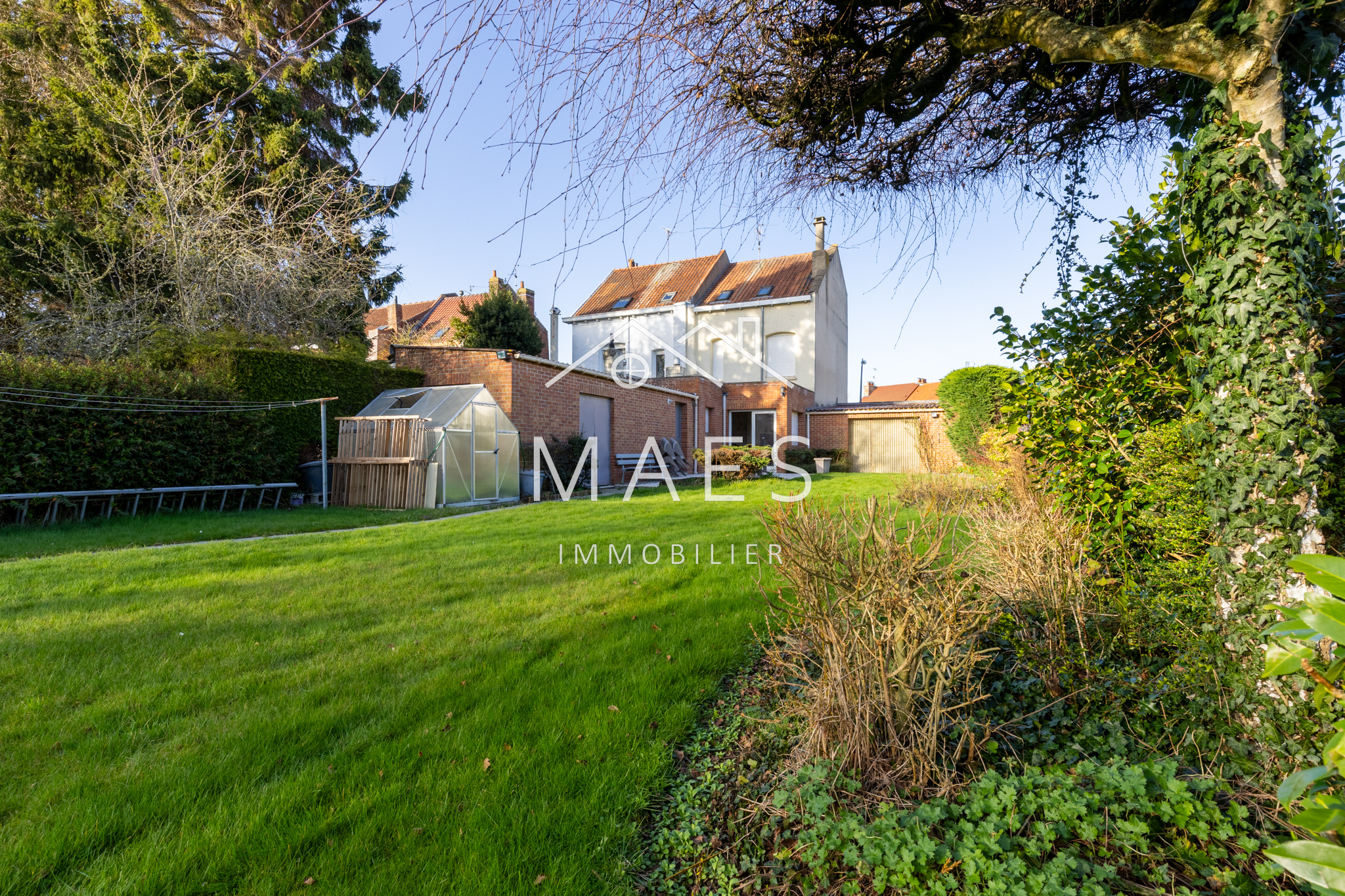 WAMBRECHIES - À quelques pas des commodités, dans un environnement recherché, votre agence MAES IMMOBILIER vous invite à découvrir cette maison semi-individuelle des années 30, édifiée sur une parcelle de plus de 900 m2.Derrière sa façade pleine de charme, la maison développe environ 111 m2 habitables et dévoile un potentiel rare sur le secteur.L’entrée s’ouvre sur un séjour chaleureux d’environ 25 m2, prolongé par une spacieuse cuisine de 22 m2 tournée vers le jardin. Un espace de vie convivial, propice aux instants partagés. Salle de bain avec double vasque, WC, buanderie et atelier complètent ce niveau.À l’étage, deux belles chambres (15 m2 et 13,5 m2) offrent confort et fonctionnalité, dont l’une dispose de rangements et d’un sanibroyeur.Le dernier niveau accueille une troisième chambre de 15 m2 ainsi qu’un grenier d’environ 10 m2, prêt à devenir une quatrième chambre, un bureau ou un espace dédié aux passions.En sous-sol, une cave d’environ 10 m2.À l’extérieur, le terrain arboré exposé sud-ouest constitue un véritable havre de paix. Un jardin généreux, rare en ville, qui laisse place à tous les projets : extension, potager, espace détente.Un vaste garage de plus de 46 m2, accompagné de deux stationnements privatifs, complètent l’ensemble. Idéal pour une profession libérale, un artisan, ou tout simplement pour ceux qui ont besoin d’espace.Cette propriété offre de multiples possibilités d’évolution et séduira les acquéreurs en quête d’authenticité, de volume et de liberté d’aménagement.Une opportunité rare à Wambrechies, contactez-nous pour organiser une visite !