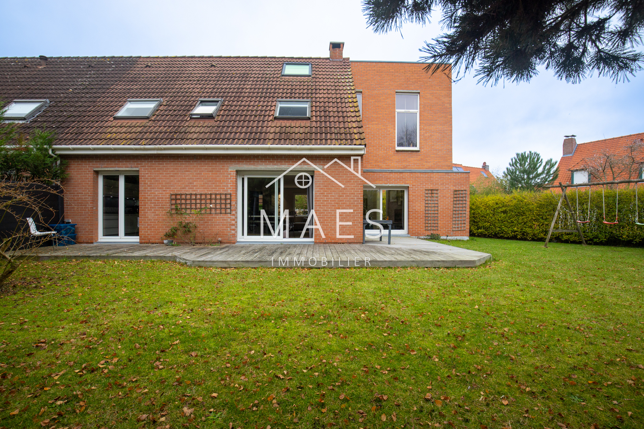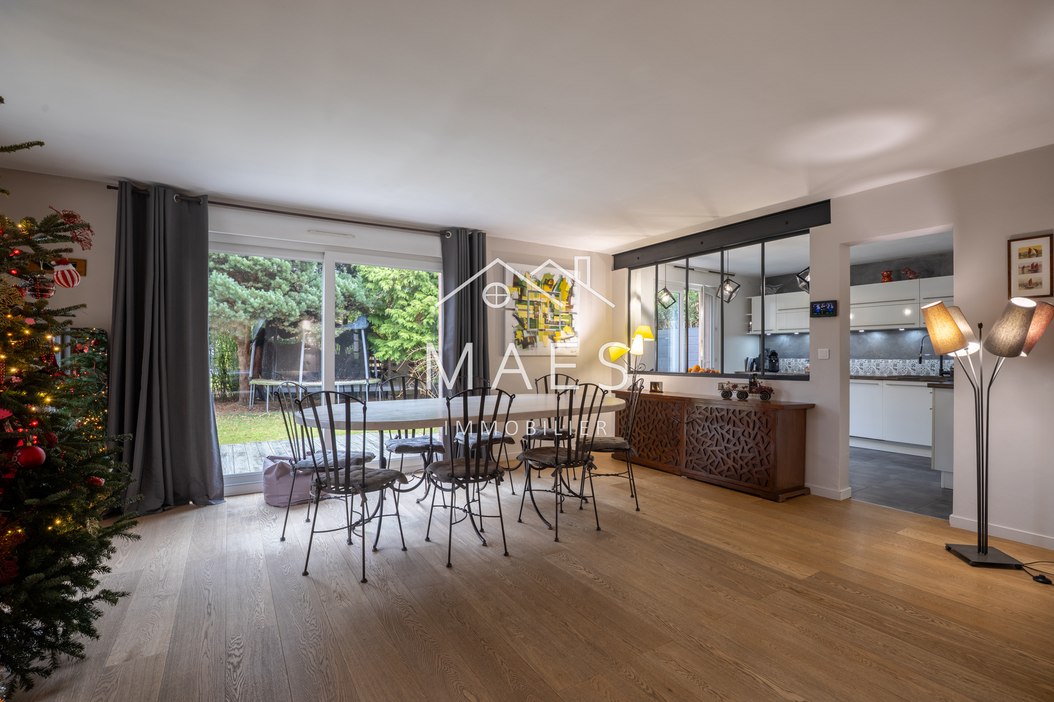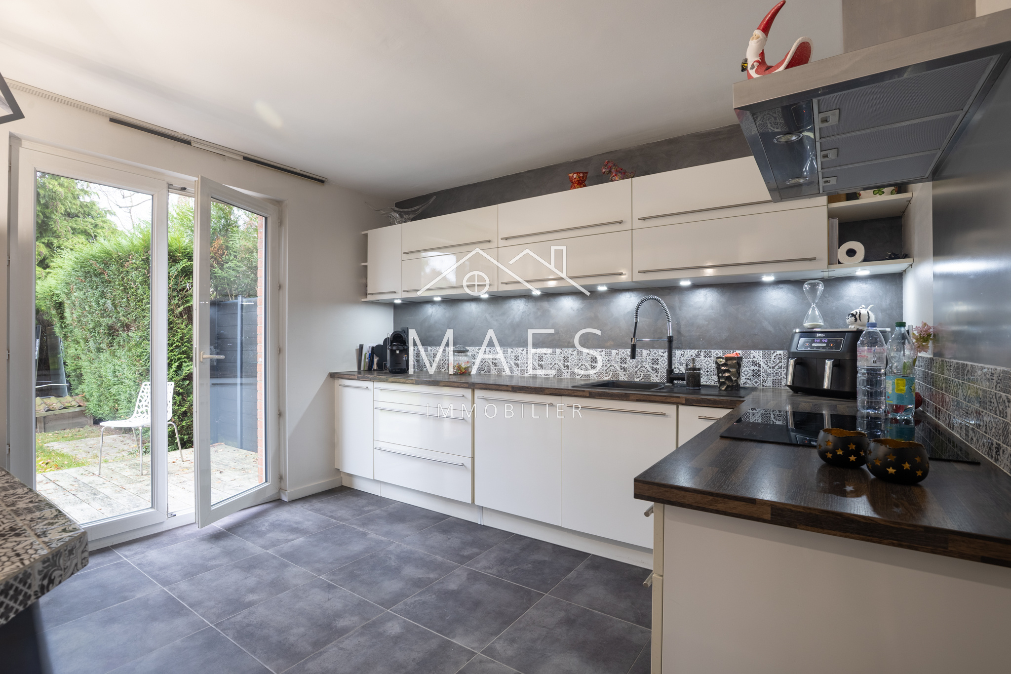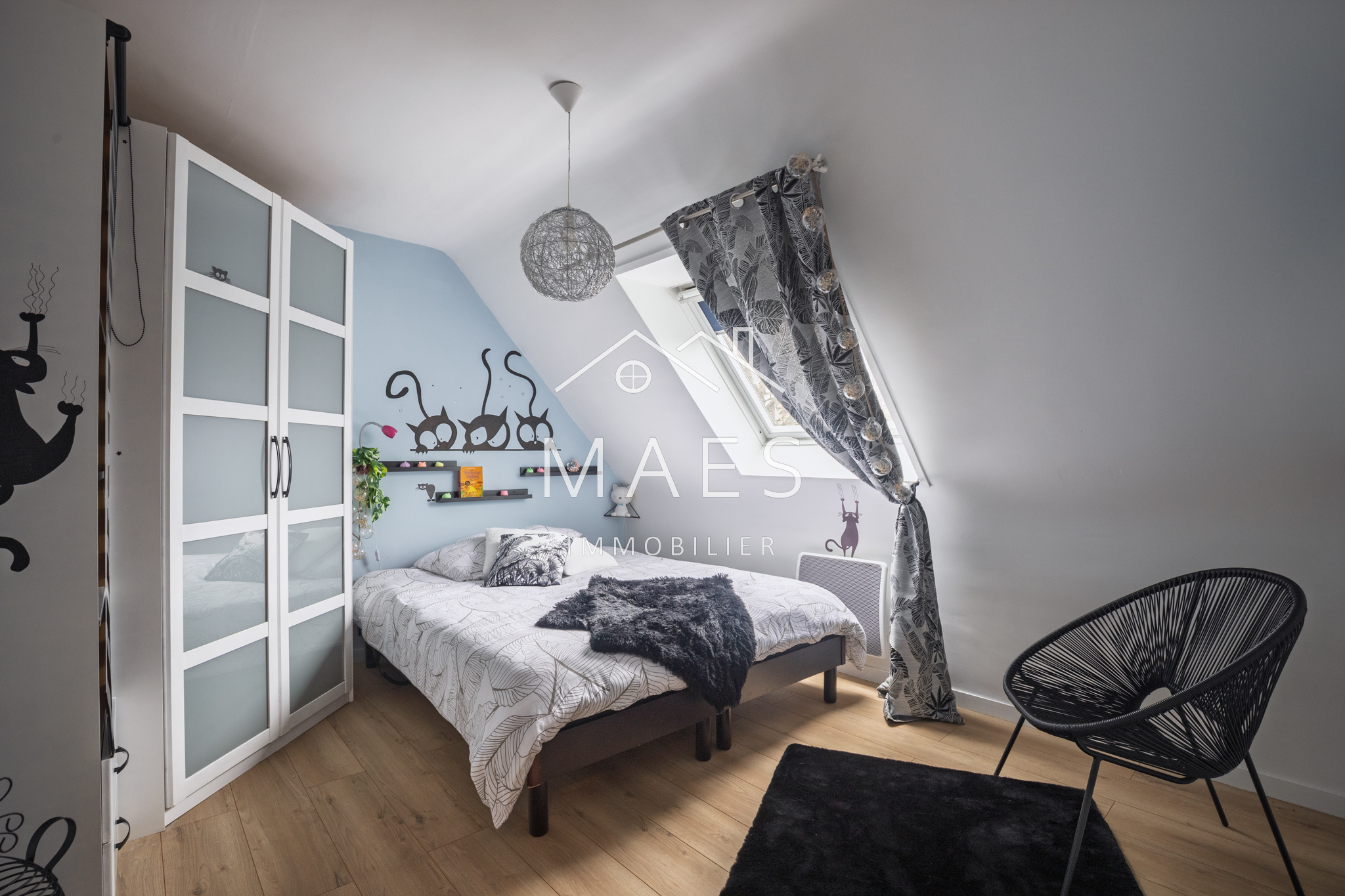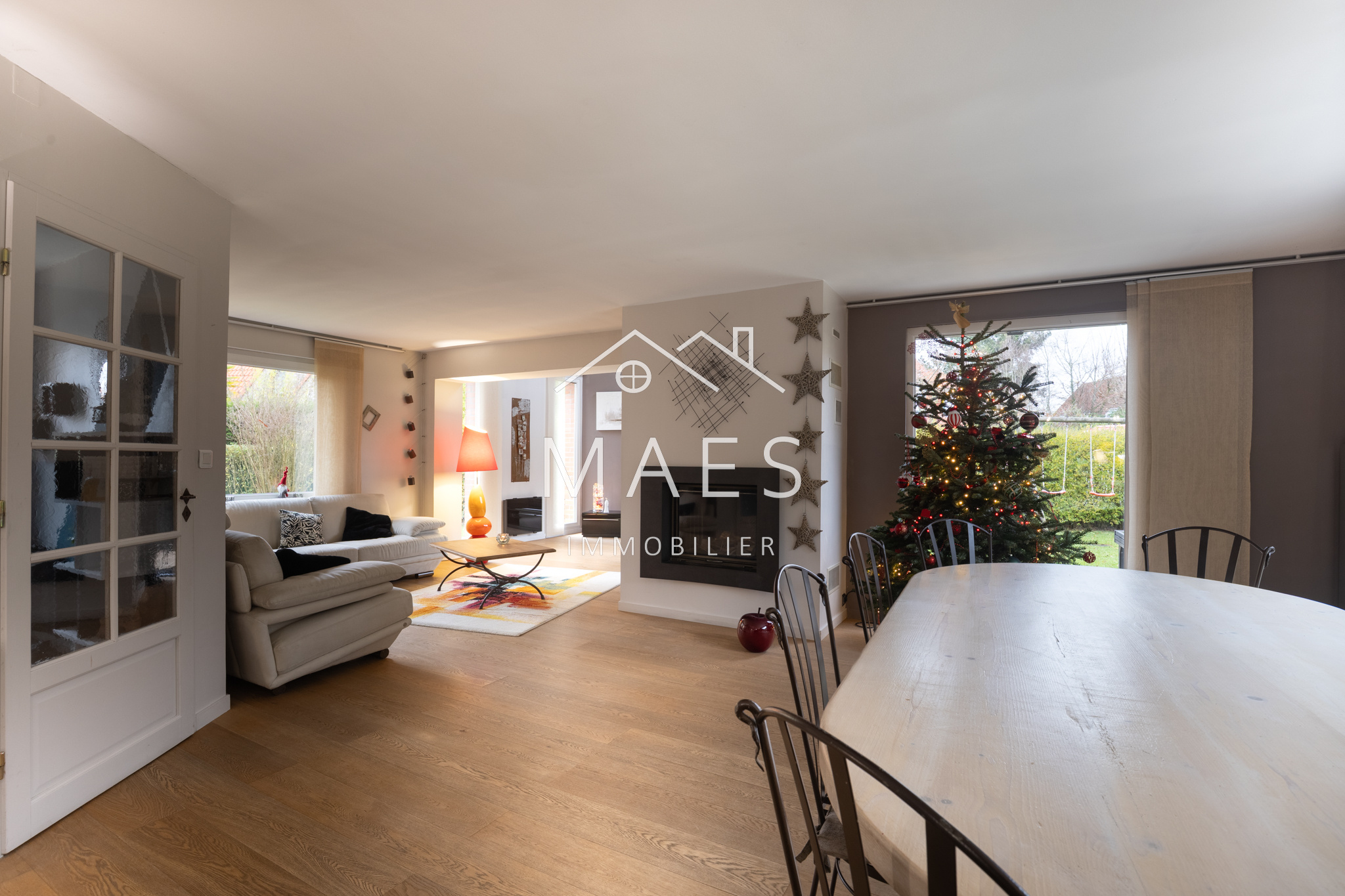 BONDUES - Idéalement située au calme dans un écrin de verdure, dans le domaine prisé du Vert Touquet, à proximité des commerces, écoles et transports, des champs pour vos promenades : COUP DE COEUR assuré pour cette charmante maison semi-individuelle de 1986 d'environ 118 m2 habitables (170 m2 au sol) bâtie sur un beau terrain arboré de 540 m2 ! Vous apprécierez ses volumes et prestations de qualité : l'entrée avec WC et vestiaire vous mène à un salon / séjour baigné de lumière, agrandi en 2010 par une belle extension formant un espace de vie convivial de plus de 60 m2 et intégrant un espace bureau en mezzanine.Une cuisine équipée, semi-ouverte par une magnifique verrière et fonctionnelle grâce à ses nombreux rangements et à son plan déjeunatoire. Le tout donnant sur la grande terrasse et l'agréable jardin où vous passerez de bons moments en famille ou entre amis. A l’étage, un large palier dessert quatre chambres confortables, toutes équipées de placards, ainsi qu’une salle de bains avec grande vasque et douche. Bel atout de la maison : les combles aménagés offrent une cinquième chambre lumineuse, idéale pour une salle de jeux, une chambre d’amis ou un spacieux bureau selon vos besoins. A l'extérieur, un jardin soigné d'environ 350 m2 agrémenté d'une terrasse bois et d'un chalet de jardin. Garage de 16m2 et deux places de parking extérieures privatives. Venez vite découvrir cette maison rare à la vente, chaleureuse et parfaitement entretenue, dans un cadre de vie exceptionnel !