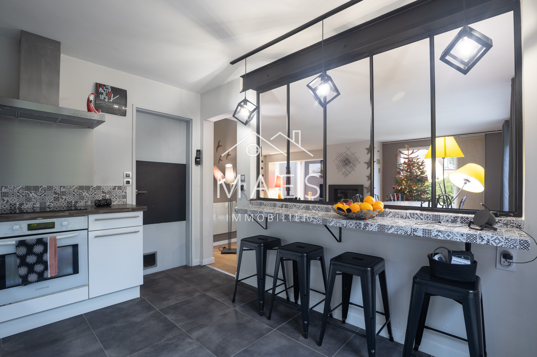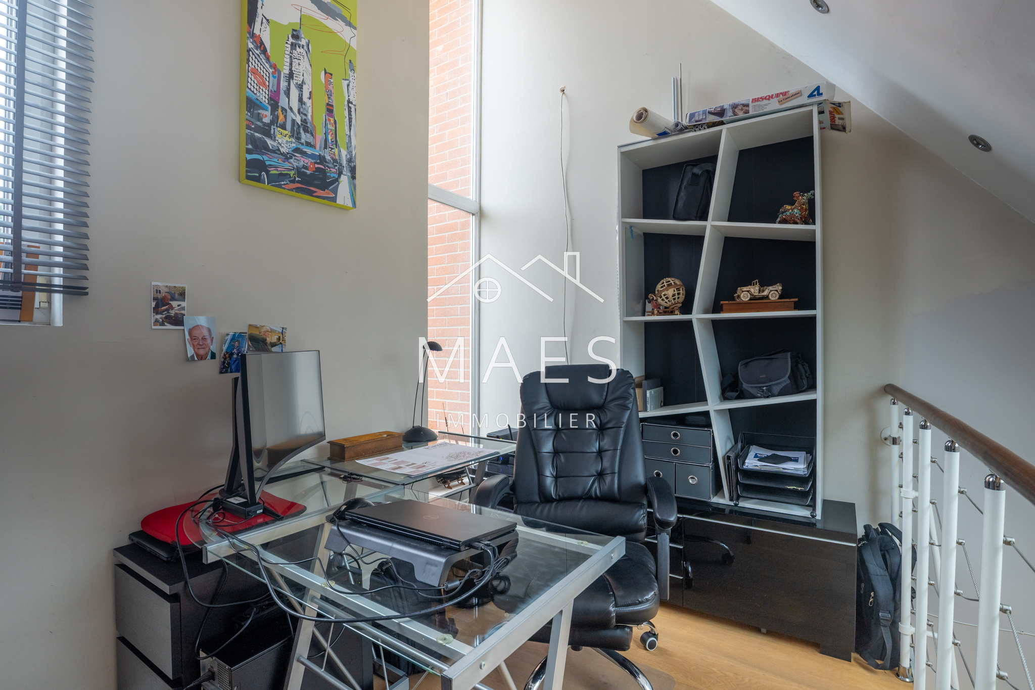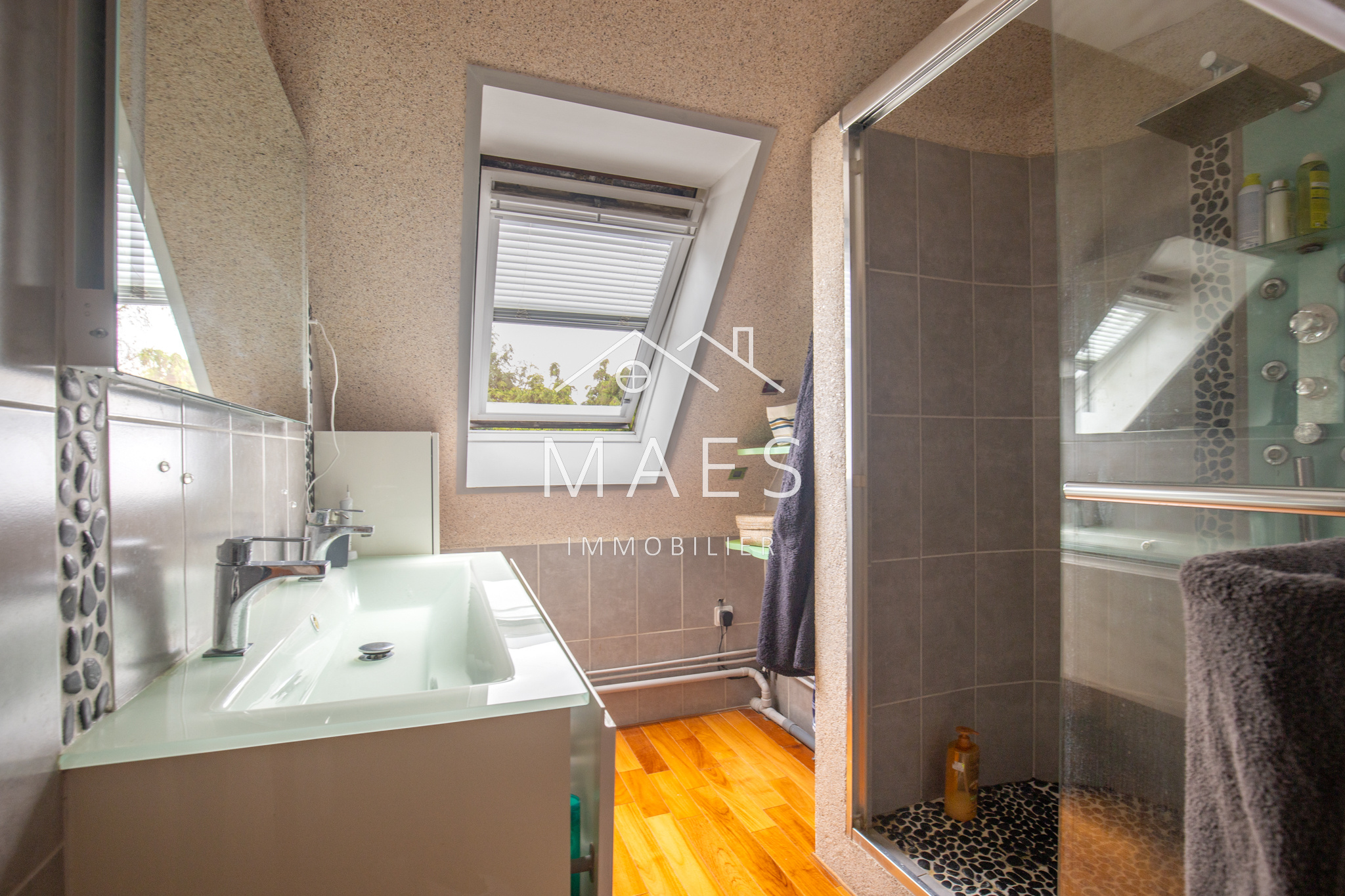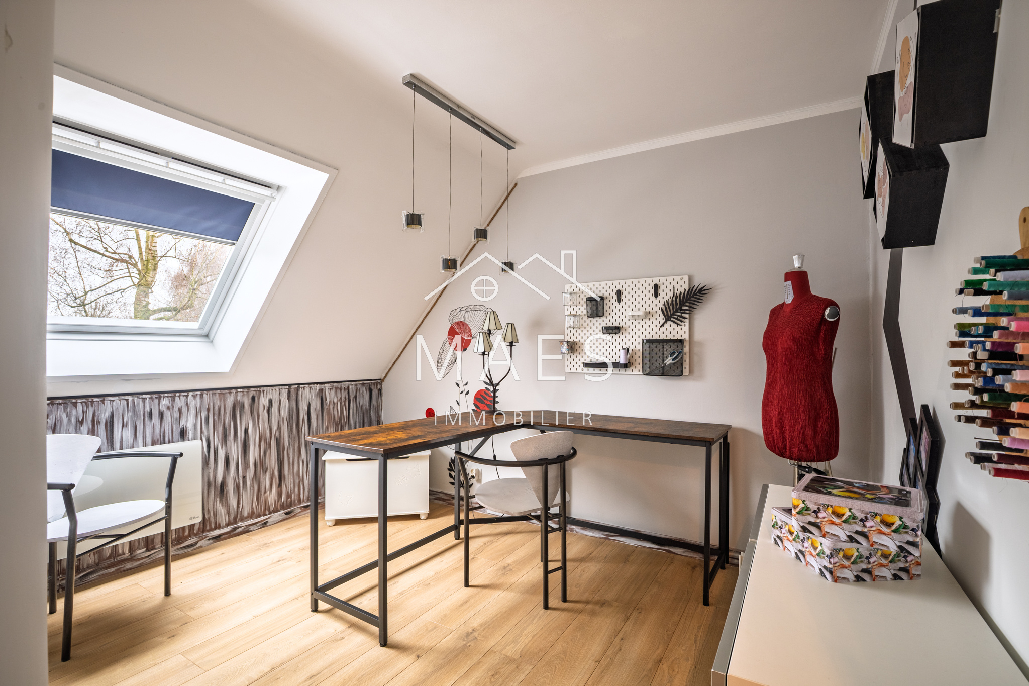 BONDUES - Idéalement située au calme dans un écrin de verdure, dans le domaine prisé du Vert Touquet, à proximité des commerces, écoles et transports, des champs pour vos promenades : COUP DE COEUR assuré pour cette charmante maison semi-individuelle de 1986 d'environ 118 m2 habitables (170 m2 au sol) bâtie sur un beau terrain arboré de 540 m2 ! Vous apprécierez ses volumes et prestations de qualité : l'entrée avec WC et vestiaire vous mène à un salon / séjour baigné de lumière, agrandi en 2010 par une belle extension formant un espace de vie convivial de plus de 60 m2 et intégrant un espace bureau en mezzanine.Une cuisine équipée, semi-ouverte par une magnifique verrière et fonctionnelle grâce à ses nombreux rangements et à son plan déjeunatoire. Le tout donnant sur la grande terrasse et l'agréable jardin où vous passerez de bons moments en famille ou entre amis. A l’étage, un large palier dessert quatre chambres confortables, toutes équipées de placards, ainsi qu’une salle de bains avec grande vasque et douche. Bel atout de la maison : les combles aménagés offrent une cinquième chambre lumineuse, idéale pour une salle de jeux, une chambre d’amis ou un spacieux bureau selon vos besoins. A l'extérieur, un jardin soigné d'environ 350 m2 agrémenté d'une terrasse bois et d'un chalet de jardin. Garage de 16m2 et deux places de parking extérieures privatives. Venez vite découvrir cette maison rare à la vente, chaleureuse et parfaitement entretenue, dans un cadre de vie exceptionnel !
