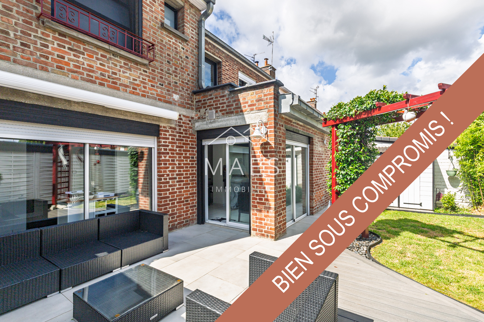 ** SOUS COMPROMIS ** MARCQ EN BAROEUL - BOURG Dans un agréable quartier résidentiel, à proximité des commerces, écoles & crèches, transports, axes routiers, votre agence MAES IMMOBILIER a le plaisir de vous présenter cette charmante maison semi-individuelle des années 50 d’environ 136 m2 habitables avec un joli jardin + terrasse bien exposés, grand garage et stationnement privé devant la maison. Vous apprécierez ses volumes et prestations de qualité : Une belle pièce de vie de près de 45 m2 incluant la cuisine semi-ouverte, le tout donnant sur le bel espace extérieur sans vis à vis : un jardin et une terrasse ensoleillés. Belle cuisine moderne équipée, fonctionnelle et conviviale grâce à son espace repas. Une buanderie / arrière-cuisine ainsi qu'un garage de 20 m2 complètent le rez-de-chaussée. WC indépendant. Au 1er ’étage, le large palier (idéal salle de jeux ou bureau) dessert une chambre parentale avec dressing + rangements, une salle de bain confortable avec baignoire d'angle, douche et double vasque. Trois autres spacieuses chambres complètent l'étage. Second WC. Vous pourrez profiter d’agréables moments au calme dans le jardin. Cette maison est chaleureuse et bien entretenue, une vraie maison de famille ! À visiter sans tarder !
