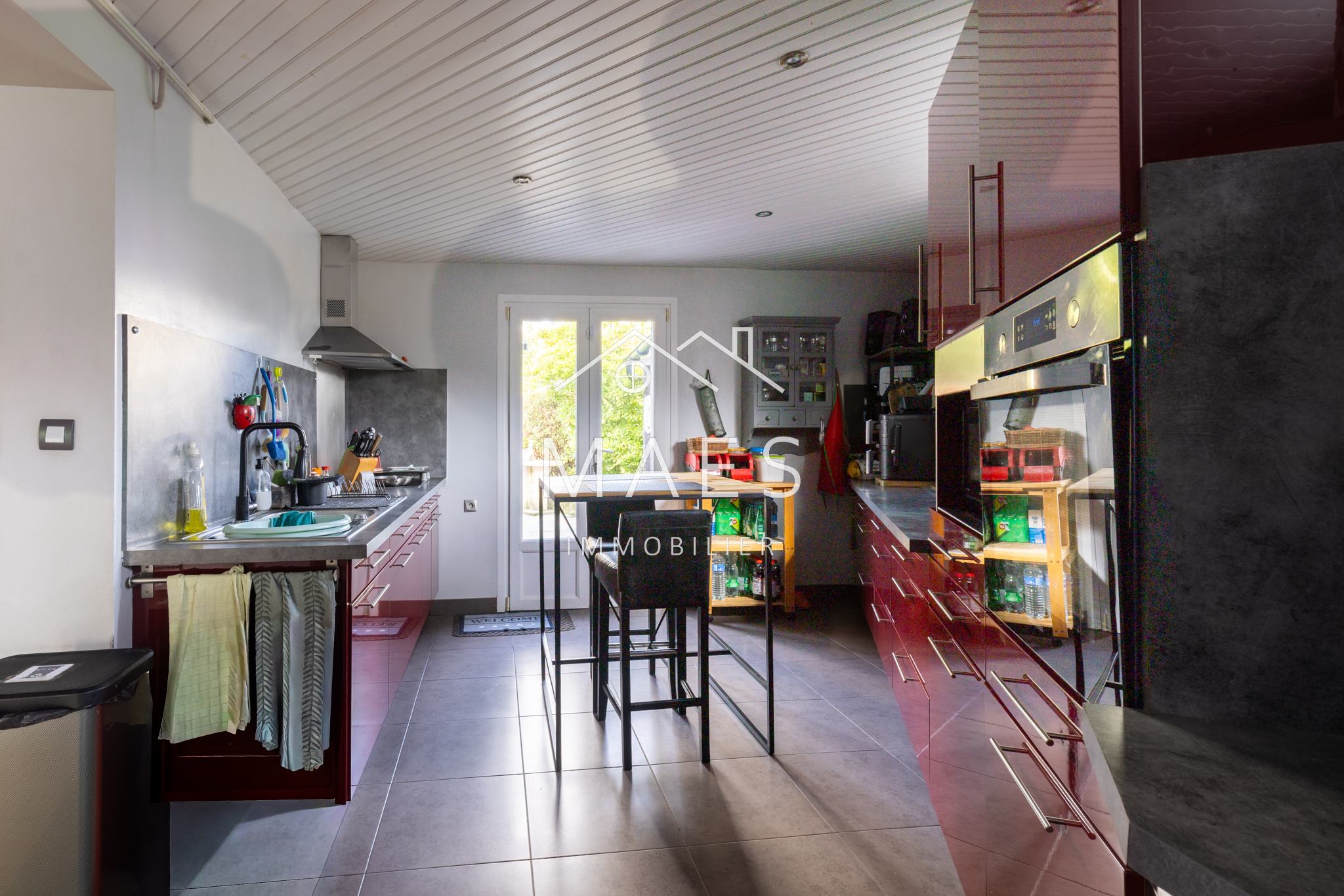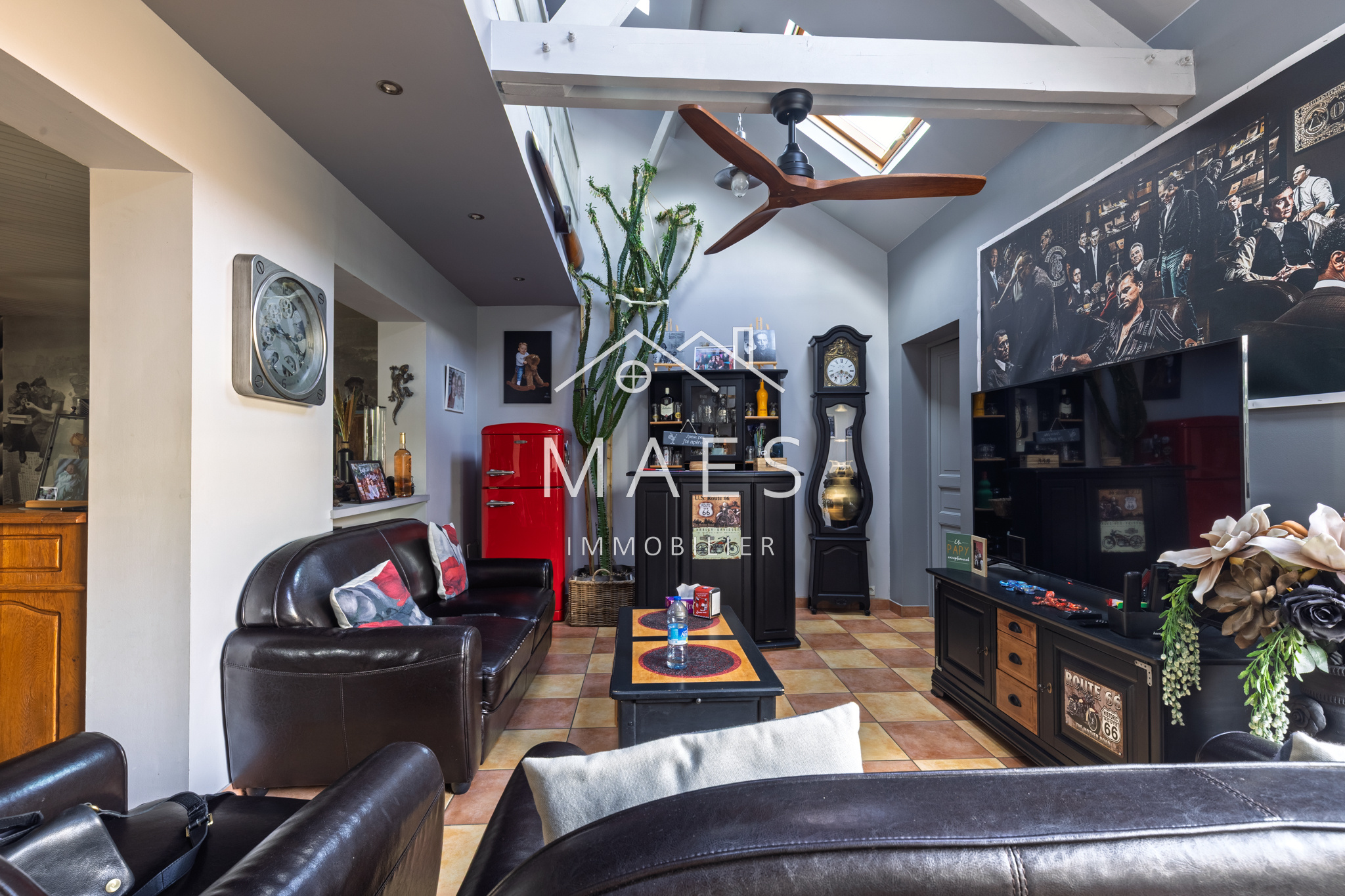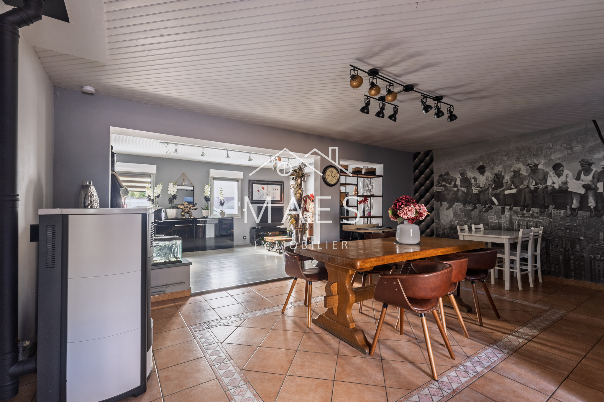 VERLINGHEM - Votre agence MAES IMMOBILIER a le plaisir de vous présenter cette belle maison semi individuelle de 186 m2 habitables, 4 chambres et un bureau, construite sur une parcelle de 230 m2. Au rez-de-chaussée, l'entrée spacieuse et lumineuse permet de découvrir un bel espace séjour de près de 70 m2, avec poêle à pellet.Cuisine équipée donnant accès à la terrasse. Deux salles de bains complètent le rez-de-chaussée. La première est équipée d'une baignoire, vasque espace buanderie et WC sanibroyeur., la seconde est équipée d'une douche, vasque et WC. Le + de la maison : la possiblité de la création d'une chambre au rez-de-chaussée Au premier étage, vous découvrirez 3 chambres de surfaces comprises entre 15 et 22 m2 et une pièce supplémentaire passante, permettant l'installation d'un espace télétravail ou d'une salle de jeux. Au deuxième étage, une cinquième chambre a été aménagée. On retrouve également un espace grenier. Vous profiterez d’un jardin clos avec terrasse, sans vis-à-vis, idéal pour les moments de détente en famille. Un abri et un carport (idéal moto / vélo / stockage) complètent ce bien. Triple vitrage sur le devant de la maison. Cette charmante maison propose de nombreuses possibilités et avec ses volumes généreux, elle est parfaite pour accueillir une famille. Venez vite la découvrir !