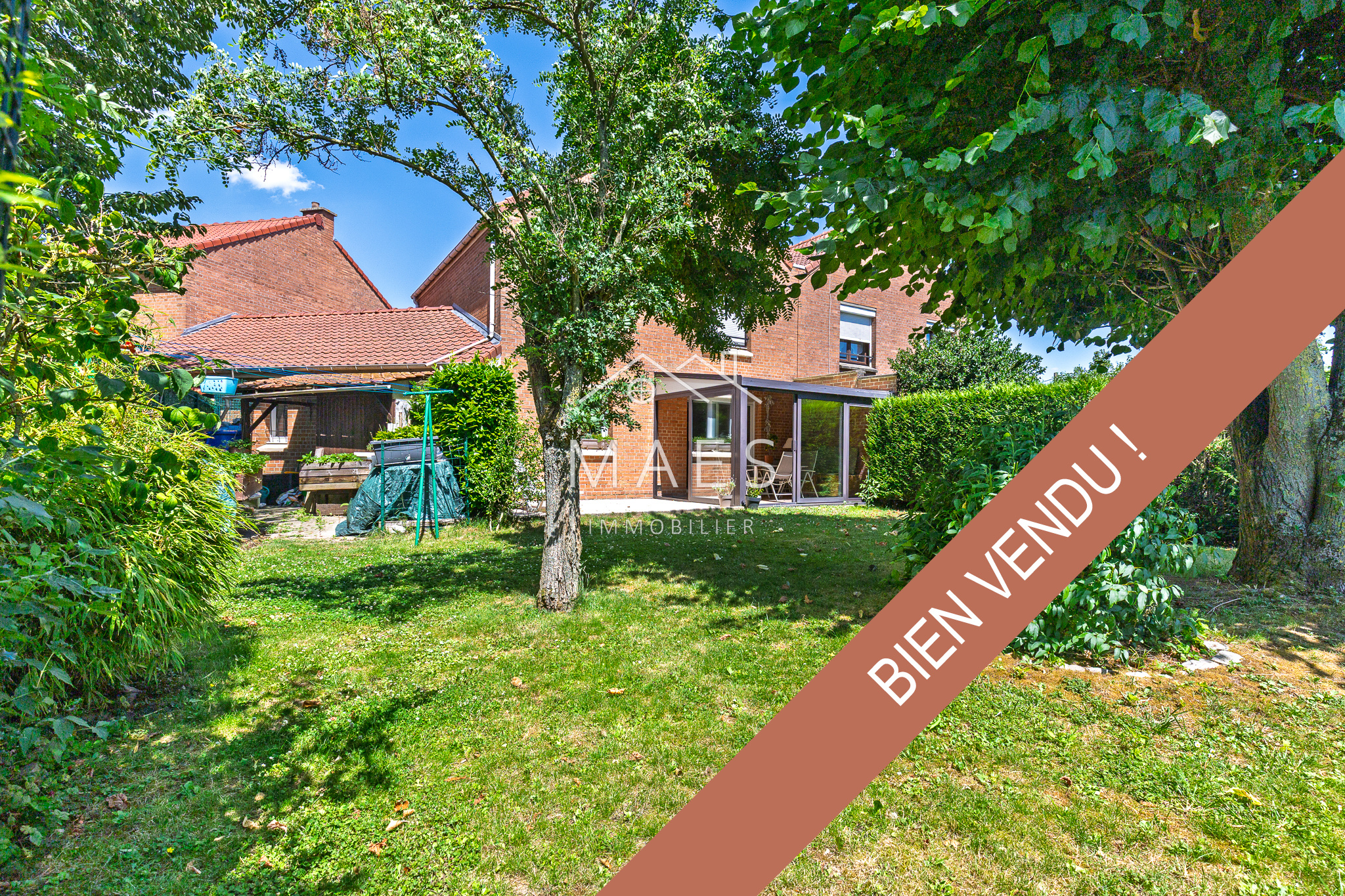 ** VENDU ** Nouveauté / Exclusivité MAES IMMOBILIER à WAMBRECHIES - Idéalement située au calme dans un agréable quartier résidentiel, à proximité immédiate des transports et écoles, de la Deûle et des chemins de campagne pour vos promenades : nous avons le plaisir de vous présenter cette charmante maison semi individuelle de 1987 d'environ 110m2 incluant buanderie et véranda. L'entrée avec vestiaire et WC indépendant, vous invite à découvrir un chaleureux espace salon / séjour avec cheminée, donnant sur une véranda lumineuse. Une cuisine séparée et fonctionnelle avec accès à la buanderie. À l'étage, le large palier dessert trois grandes chambres de surfaces comprises entre 9,5 et 13,5 m2 et une salle de bain. Un des atouts de la maison présentant de belles possibilités : des combles (possibilité d'aménagement). Très beau jardin arboré sans vis à vis avec terrasse exposés sud-ouest. Appentis. Grand garage, grenier, parking privatif. Cette maison chaleureuse n'attend plus que vous : venez vite la visiter !