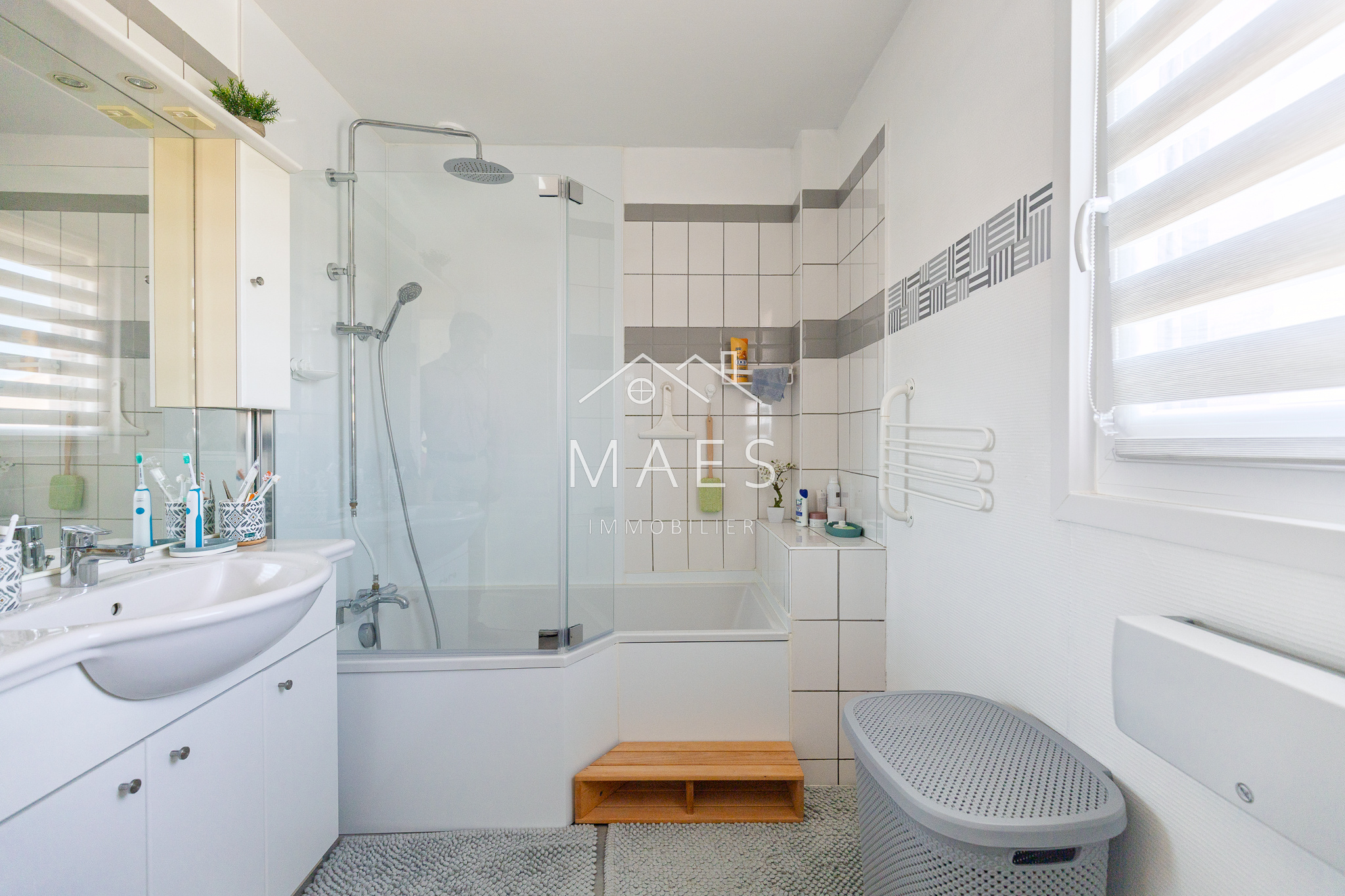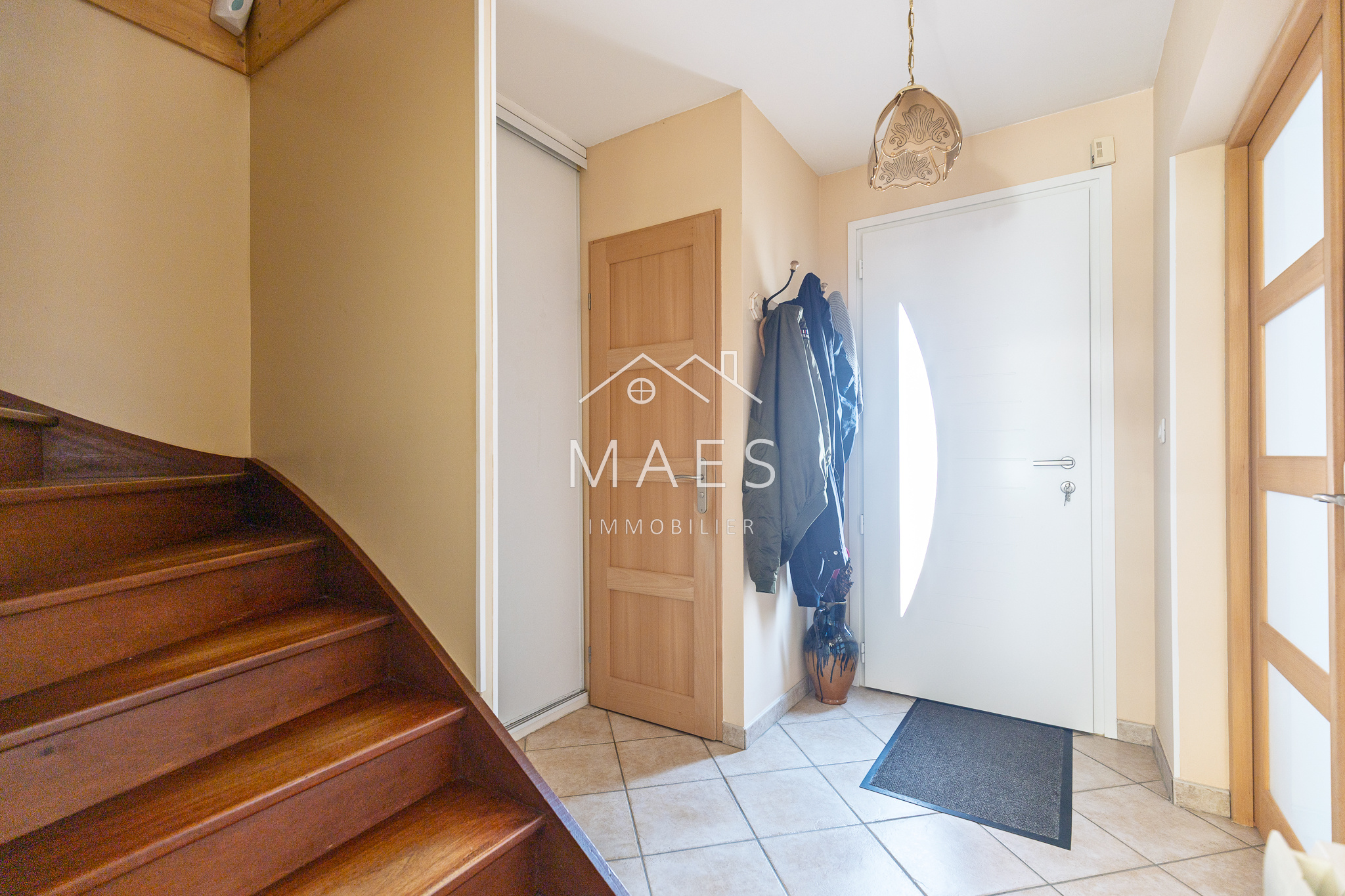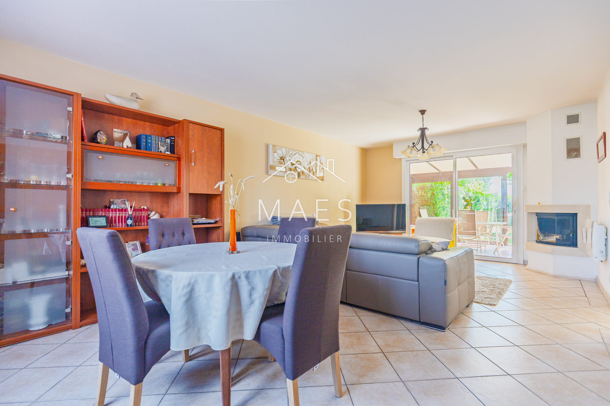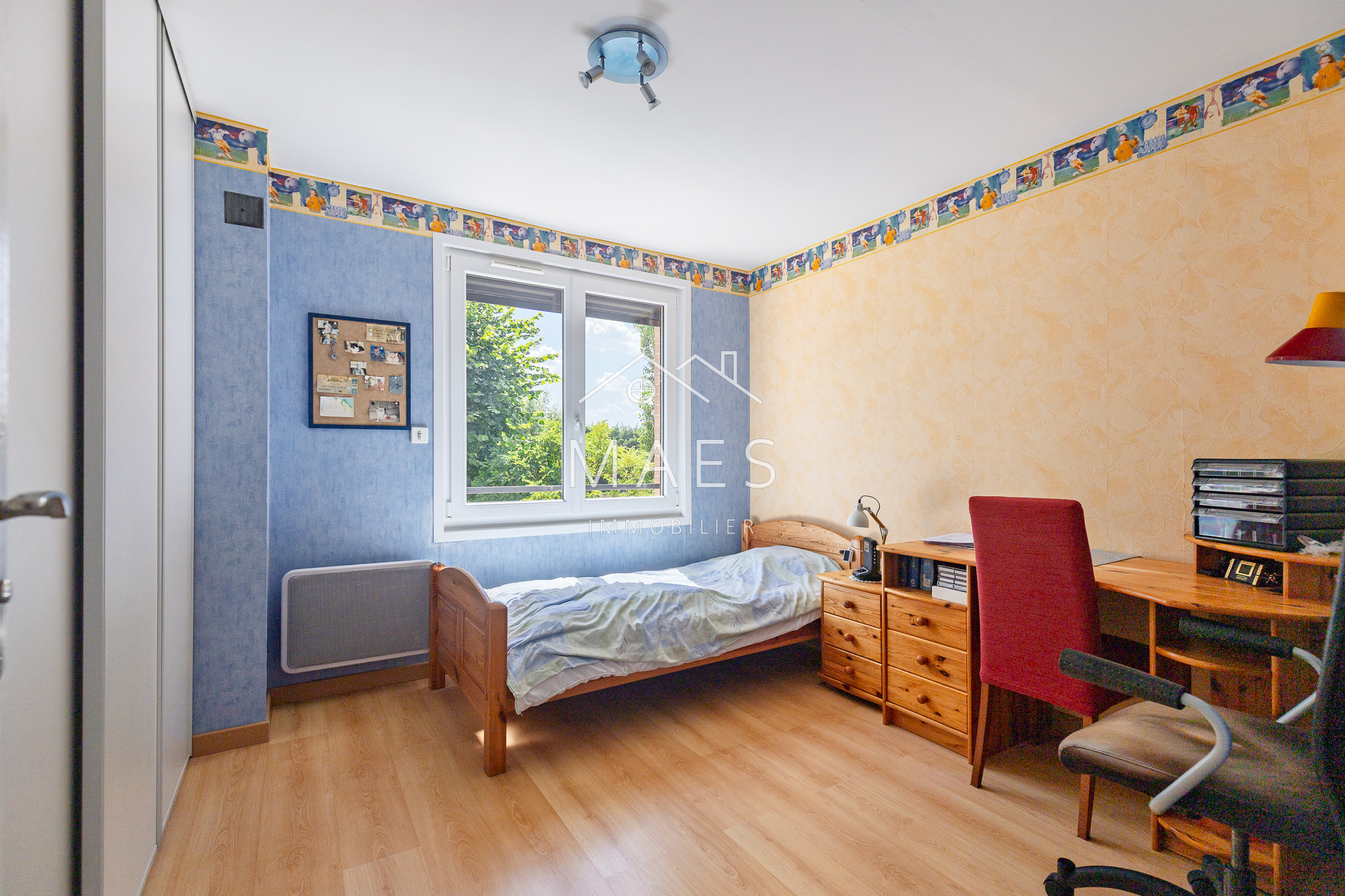 ** SOUS COMPROMIS ** Nouveauté / Exclusivité MAES IMMOBILIER à WAMBRECHIES - Idéalement située au calme dans un agréable quartier résidentiel, à proximité immédiate des transports et écoles, de la Deûle et des chemins de campagne pour vos promenades : nous avons le plaisir de vous présenter cette charmante maison semi individuelle de 1987 d'environ 110m2 incluant buanderie et véranda. L'entrée avec vestiaire et WC indépendant, vous invite à découvrir un chaleureux espace salon / séjour avec cheminée, donnant sur une véranda lumineuse. Une cuisine séparée et fonctionnelle avec accès à la buanderie. À l'étage, le large palier dessert trois grandes chambres de surfaces comprises entre 9,5 et 13,5 m2 et une salle de bain. Un des atouts de la maison présentant de belles possibilités : des combles (possibilité d'aménagement). Très beau jardin arboré sans vis à vis avec terrasse exposés sud-ouest. Appentis. Grand garage, grenier, parking privatif. Cette maison chaleureuse n'attend plus que vous : venez vite la visiter !