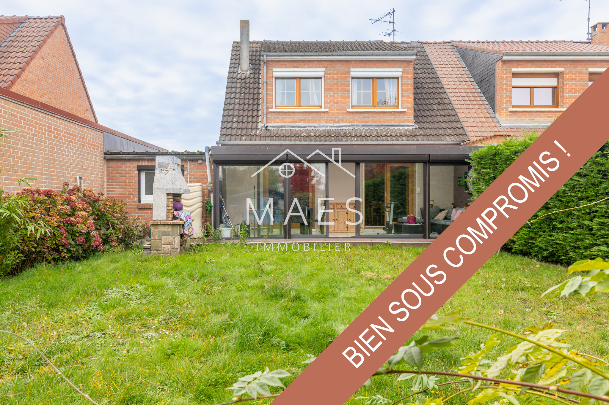 ** SOUS COMPROMIS ** WAMBRECHIES - Dans un agréable quartier résidentiel, en impasse, à proximité des commerces, écoles, bus, axes routiers et de la Deûle pour vos promenades ; votre agence MAES IMMOBILIER a le plaisir de vous présenter cette charmante maison semi-individuelle des années 70 d'environ 98 m2 habitables, 116 m2 avec la véranda + garage et parking privatif. Coup de coeur pour son spacieux jardin ! Vous apprécierez ses volumes et prestations : l’entrée dotée d'un WC et d'un vestiaire, vous mène à une agréable pièce de vie comprenant une cuisine d'environ 10,7 m2, un salon / séjour avec une cheminée d'environ 28 m2, puis une grande veranda d'environ 17 m2, le tout donnant sur un beau jardin au calme où vous profiterez de moments conviviaux en famille ou entre amis. Une salle d'eau en rez-de-chaussée (douche et vasque), garage d'environ 19 m2 avec buanderie. À l’étage, le palier dessert trois chambres confortables : une première d'environ 10 m2, une seconde d'environ 13 m2, puis une troisième chambre d'environ 14,5 m2. Une grande salle de bain avec douche, double vasque + second WC. Un cabanon de stockage complète le jardin. Cette maison chaleureuse et soignée, aux nombreux atouts, saura vous séduire à coup sûr ! Venez vite la découvrir !