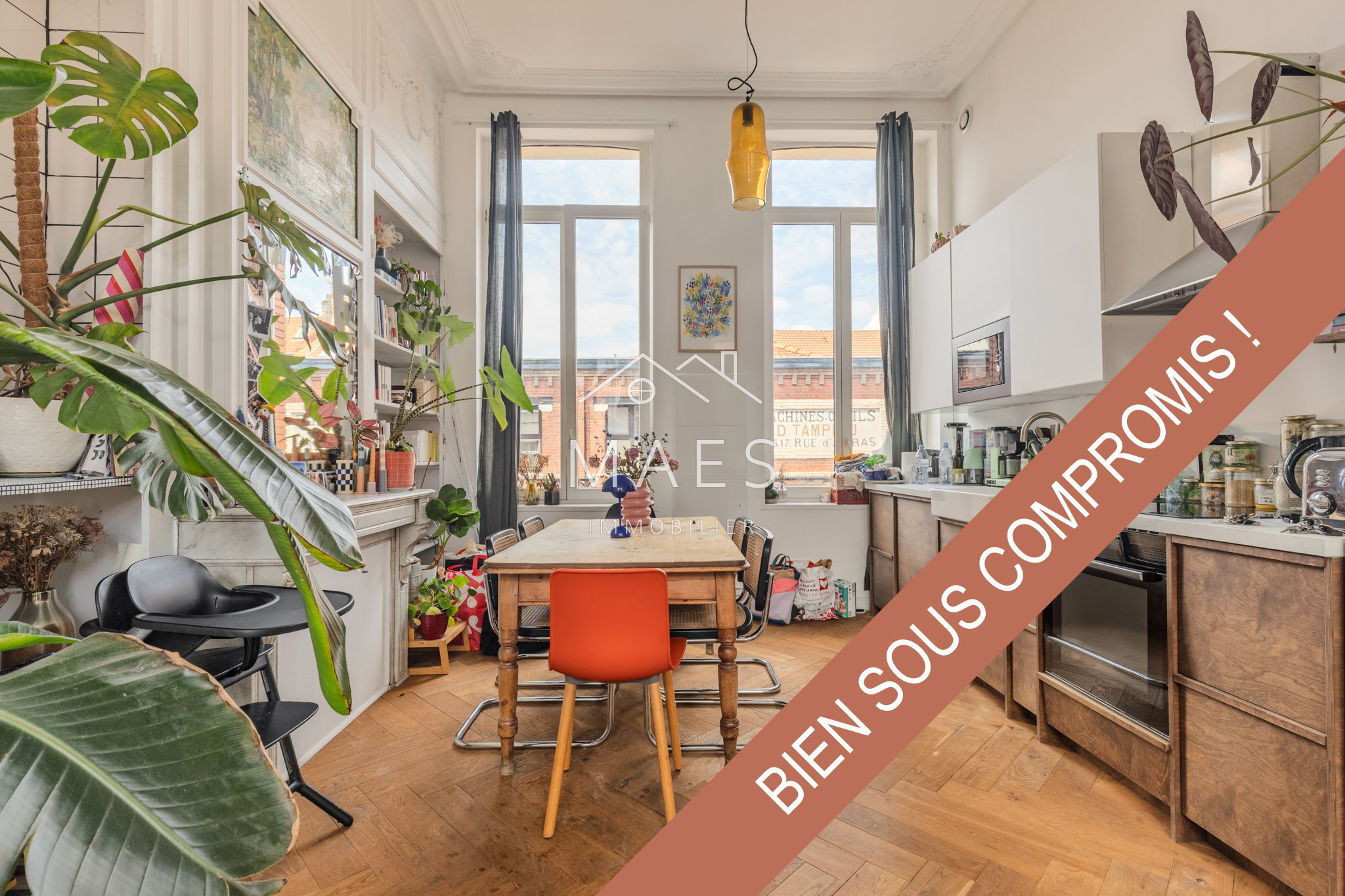 ** SOUS COMPROMIS ** Nouveauté / Exclusivité MAES IMMOBILIER LILLE - Proximité immédiate PARC JEAN-BAPTISTE LEBAS ! Idéalement situé dans une rue calme à proximité immédiate du parc Jean-Baptiste Lebas, du métro et bus (Porte d'Arras, République), des commerces, écoles, axes routiers, au dernier étage d'une petite copropriété : votre agence MAES IMMOBILIER a le plaisir de vous présenter ce superbe appartement T4 (3 chambres) en triplex de 87,93 m2 Loi Carrez / 105,11 m2 au sol. Coup de coeur pour son cachet et sa luminosité ! Cet appartement chaleureux a été récemment rénové avec goût et matériaux de qualité. Vous apprécierez sa décoration soignée et ses volumes : au rez-de-chaussée, l’entrée vous mène à une spacieuse pièce de vie traversante, baignée de clarté grâce à ses grandes fenêtres. Le cachet de l'ancien y a été préservé : beau parquet chevron, hauteur sous plafond, cheminée en marbre et moulures. Une agréable cuisine équipée, réalisée par un artisan, très fonctionnelle et conviviale. Une première salle de bain aménagée d'une douche, d'une vasque et d'un WC. Le magnifique escalier d’époque dessert le premier étage, composé de deux grandes chambres de 14 m2 avec placards et cheminées anciennes, puis d'une salle de bain dotée d'une baignoire, vasque et d'un second WC. Au deuxième, les combles sont aménagés en une vaste troisième chambre d'environ 30 m2 au sol, avec espaces de rangement. Un des atouts du bien : une cave de 18 m2, en plus d'un local à vélo sécurisé. Bel emplacement où l’on fait tout à pied, venez vite découvrir cet appartement unique !